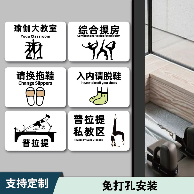 私教区办公室健身房教练门牌亚克力区域标识牌定制普拉提瑜伽馆体测区温馨提示牌俱乐部有氧区动感单车指示牌