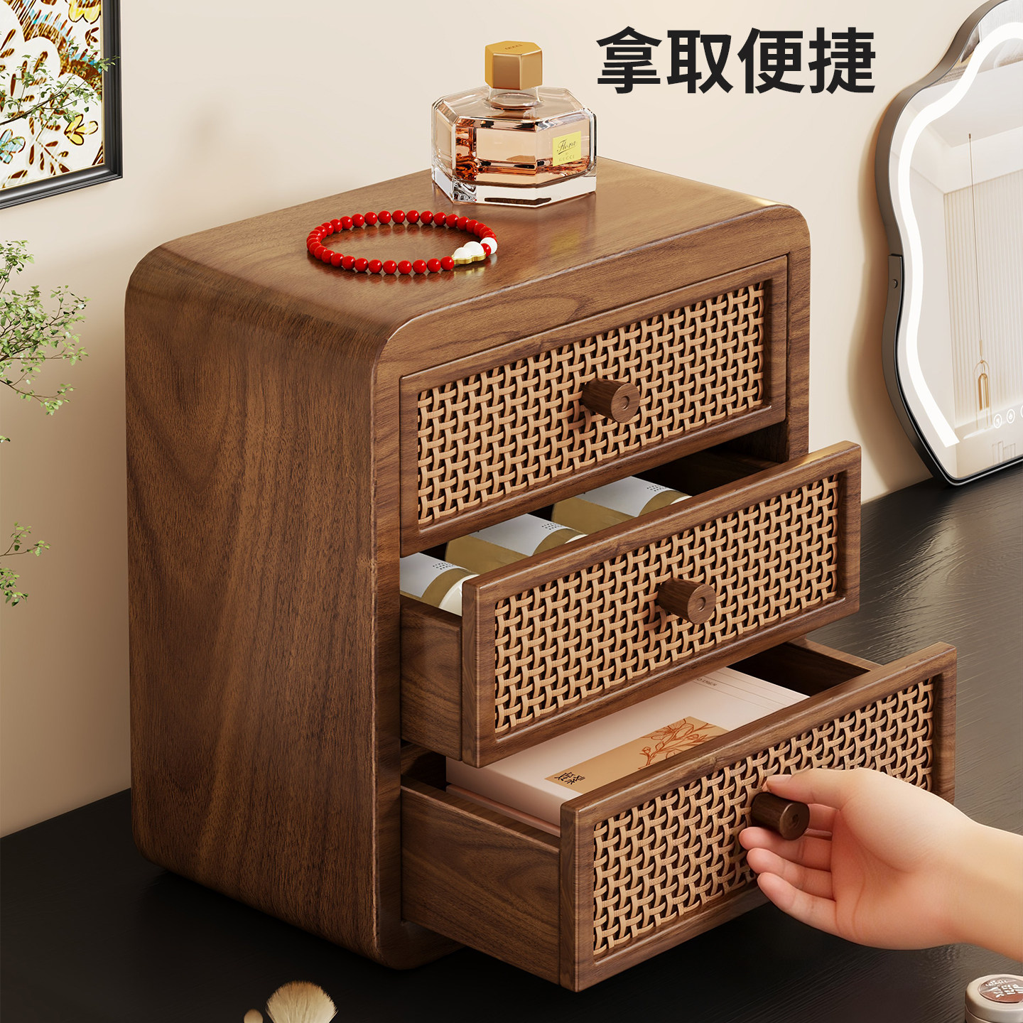 化妆品收纳盒桌面防尘抽屉式高级感口红整理箱梳妆台护肤品置物架