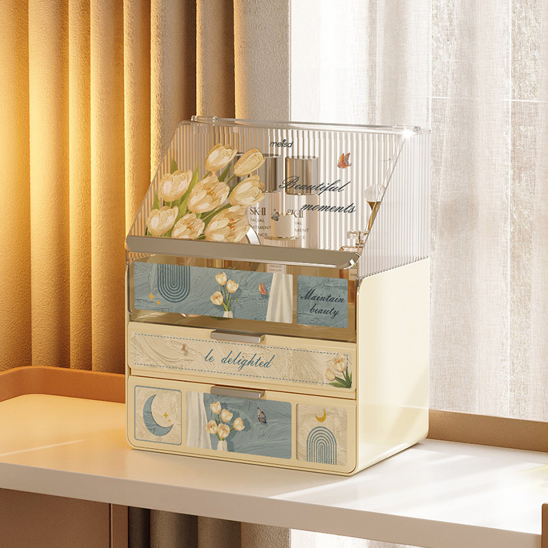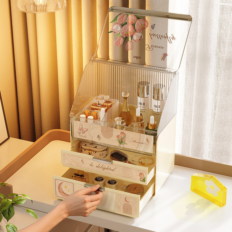 美世达化妆品收纳盒梳妆台护肤品置物架整理盒桌面防尘化妆箱抽屉