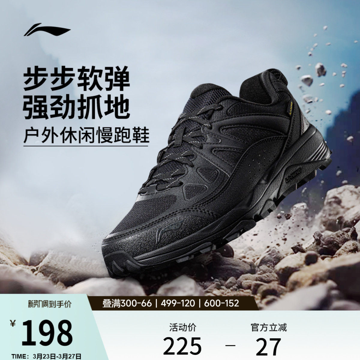 李宁高达丨户外跑步鞋男鞋新款登山徒步鞋减震黑色通勤百搭运动鞋