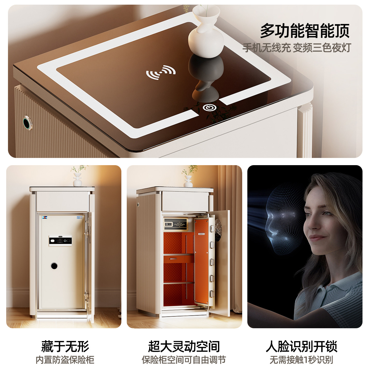 虎牌保险柜家用搬不走2026新款防盗隐藏式床头柜保险箱一体柜密码带锁人脸识别1米家庭卧室隐形大容量保险柜