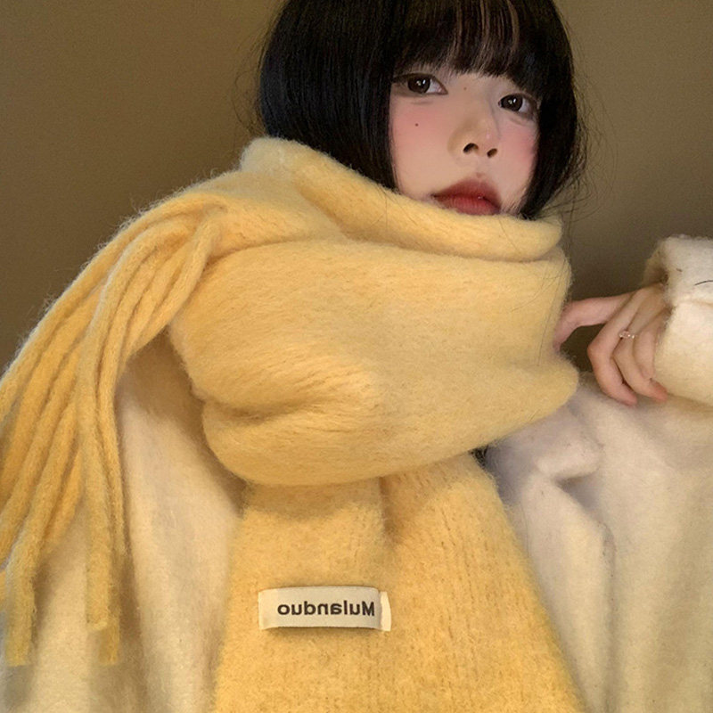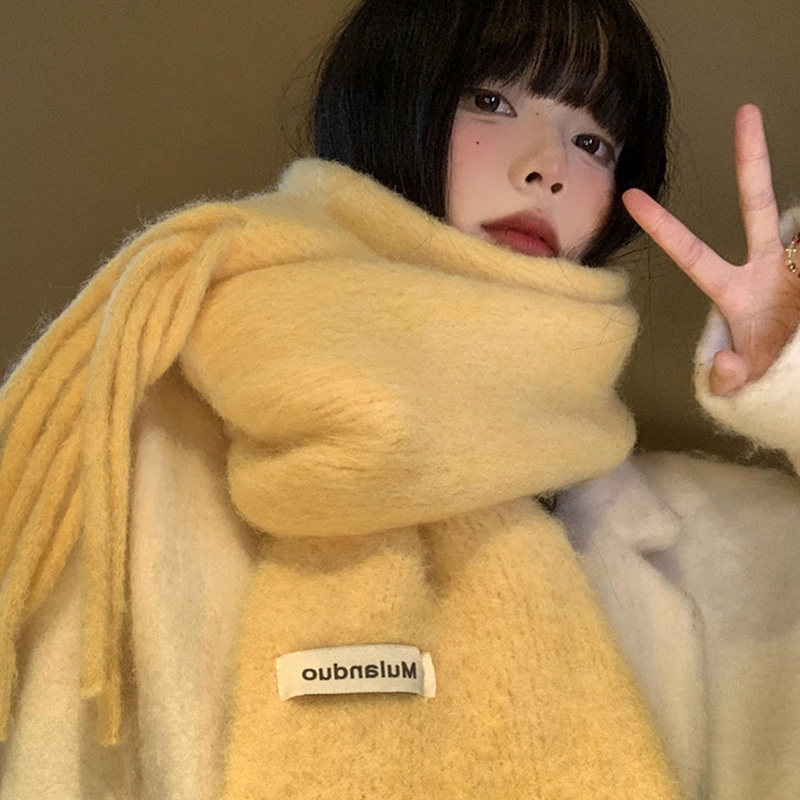 黄色针织毛线围巾女冬季2025新款韩系高级感加厚防寒保暖围脖学生