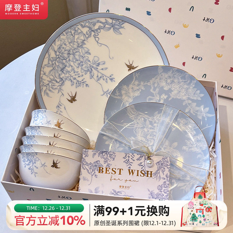 摩登主妇餐具中式骨瓷轻奢高级感餐乔迁新婚礼物碟筷碗盘套装家用