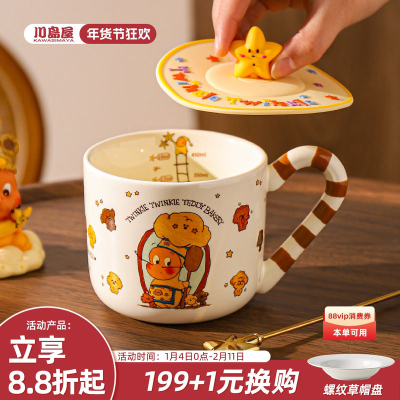 趣皿可爱马克杯卡通带盖带勺陶瓷杯情侣水杯咖啡杯子送女生伴手礼