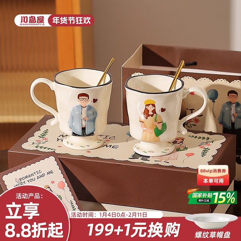 川岛屋情侣杯子高级感一对马克杯陶瓷水杯结婚订婚新婚礼物送新娘