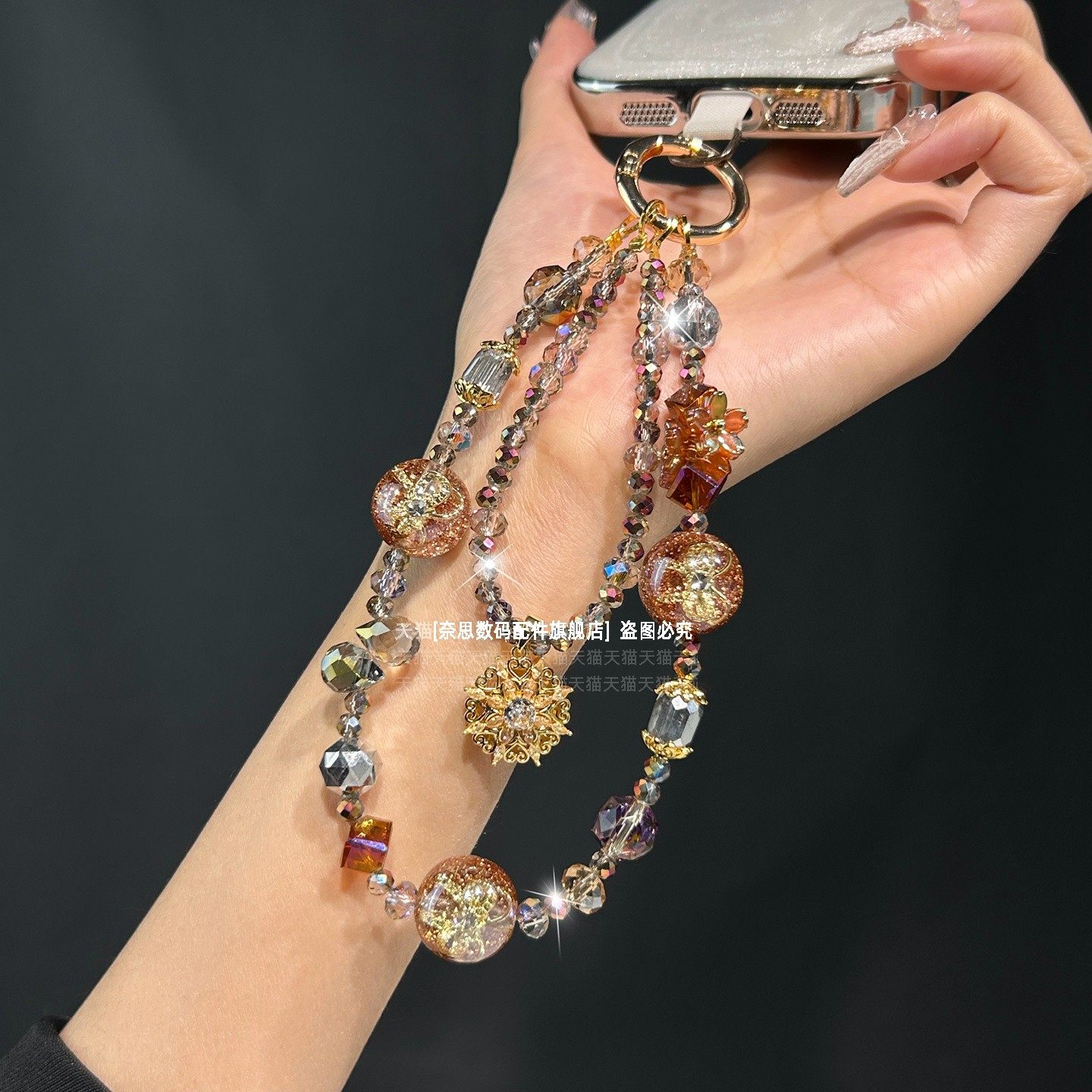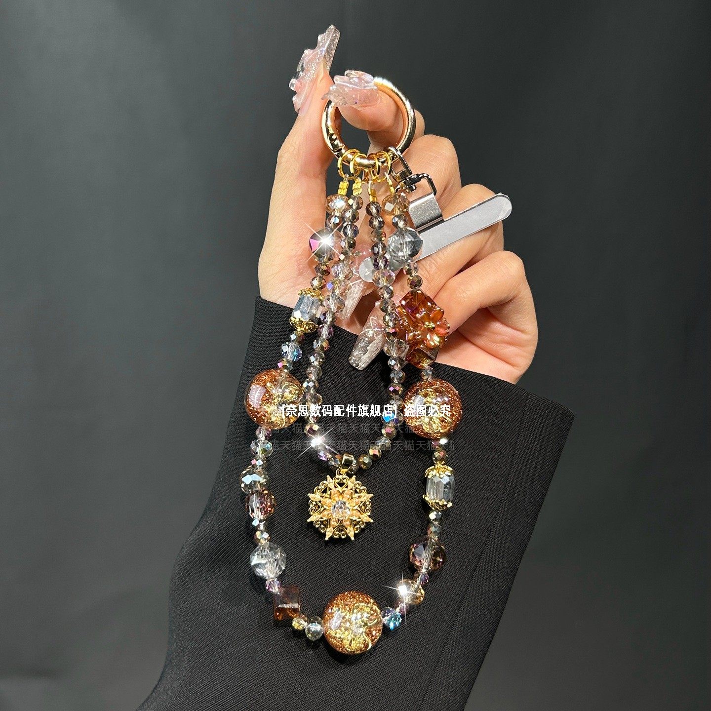 布灵爆闪手机链巨高级旋转太阳星吊坠挂链轻奢名媛风水晶手腕链条女重工串珠复古气质高端手链包包漂亮挂饰壳