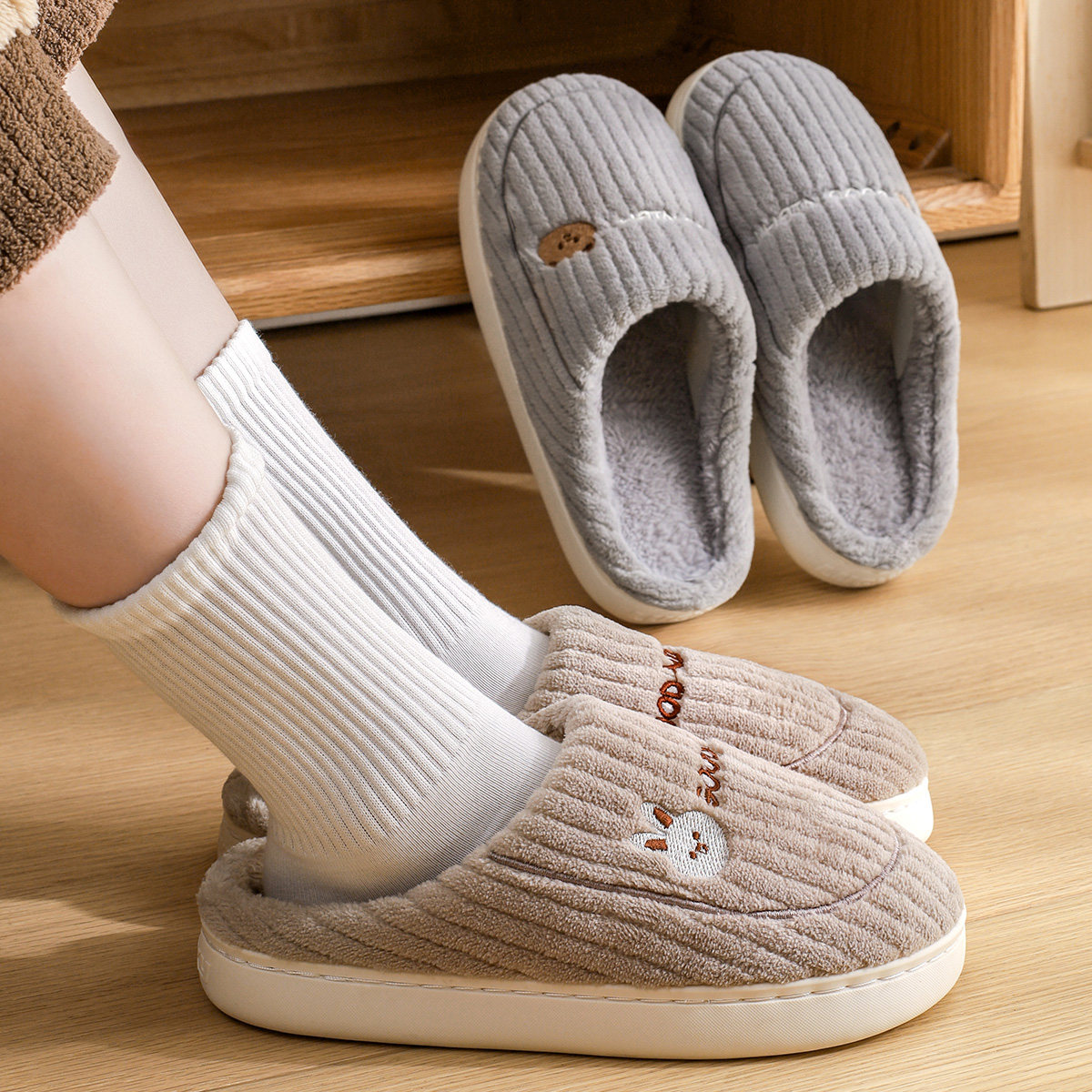 洁丽雅包头棉拖鞋女款2025新款秋冬家居保暖加绒防滑棉拖男士冬季