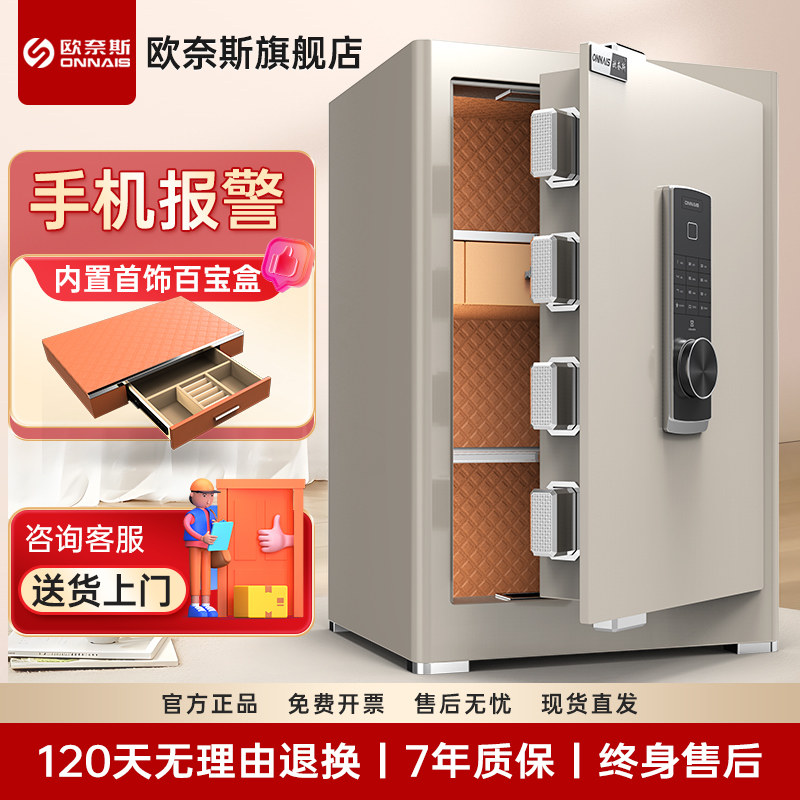欧奈斯保险柜家用小型抽屉式指纹2025新款搬不走保险箱手机智能防盗办公夹万床头柜加厚密码保管箱全钢加重