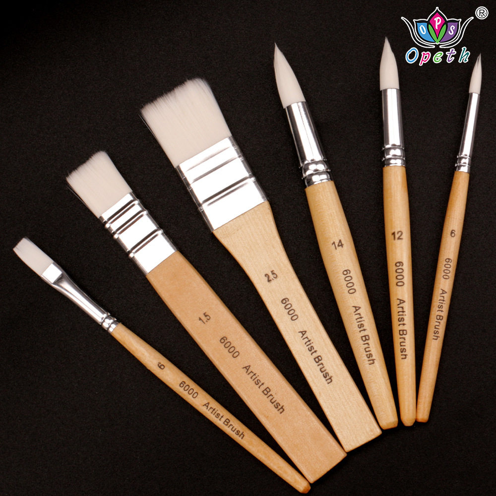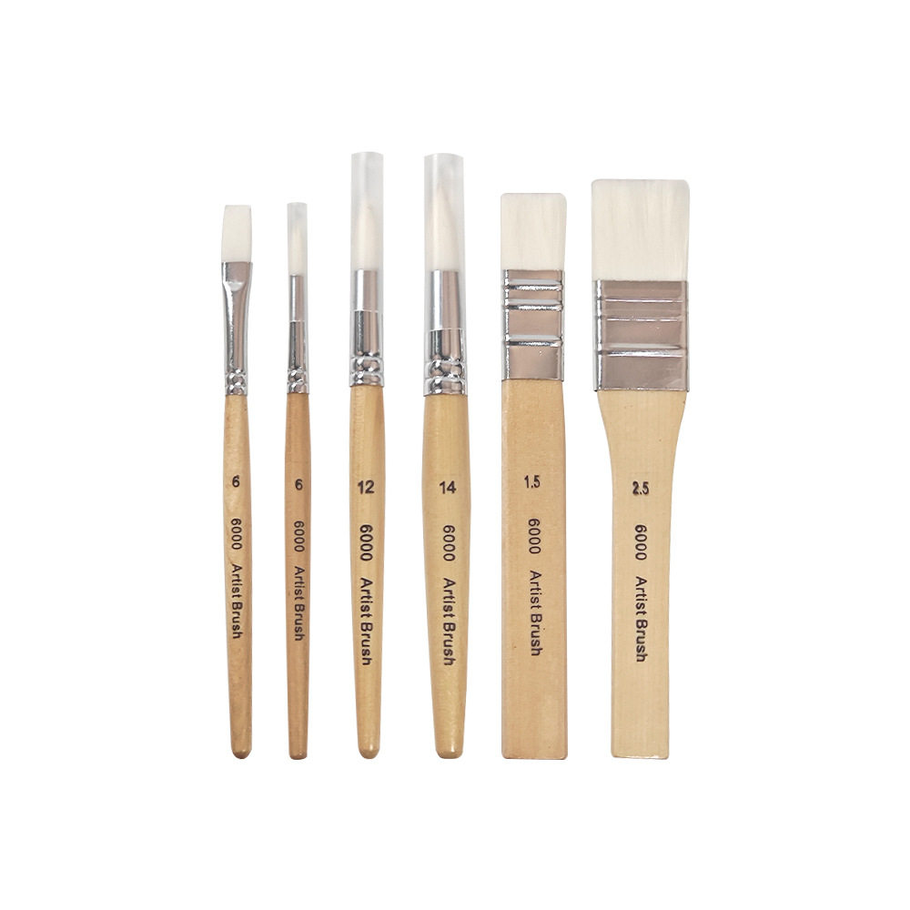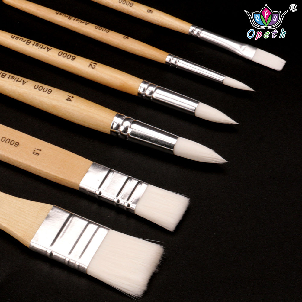 尼龙毛画笔6支组合油画笔套装画刷短杆水彩水粉丙烯颜料绘画刷子