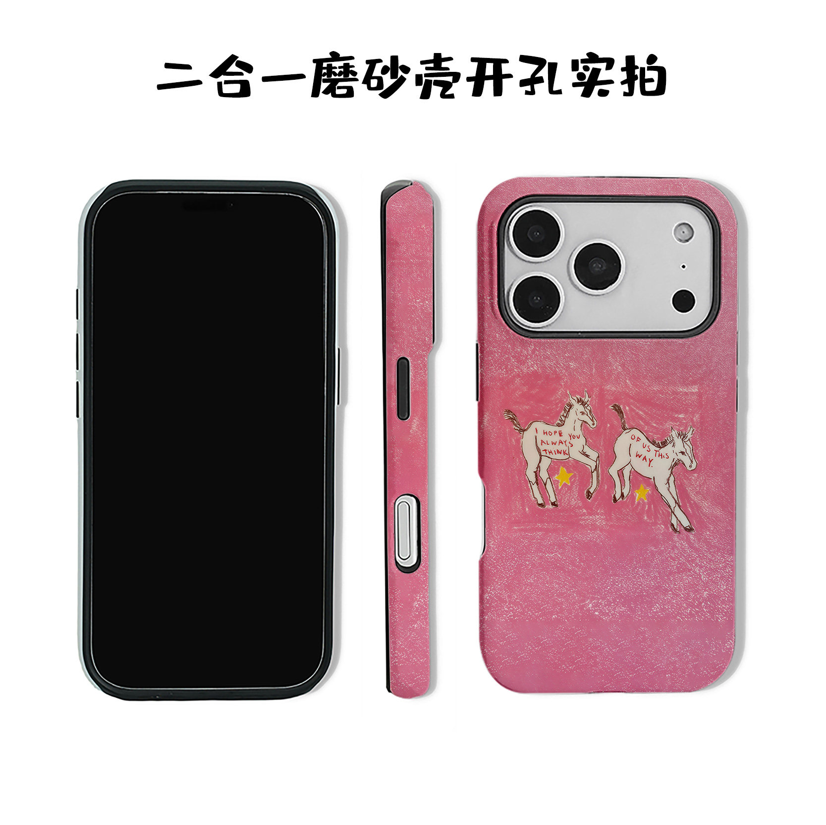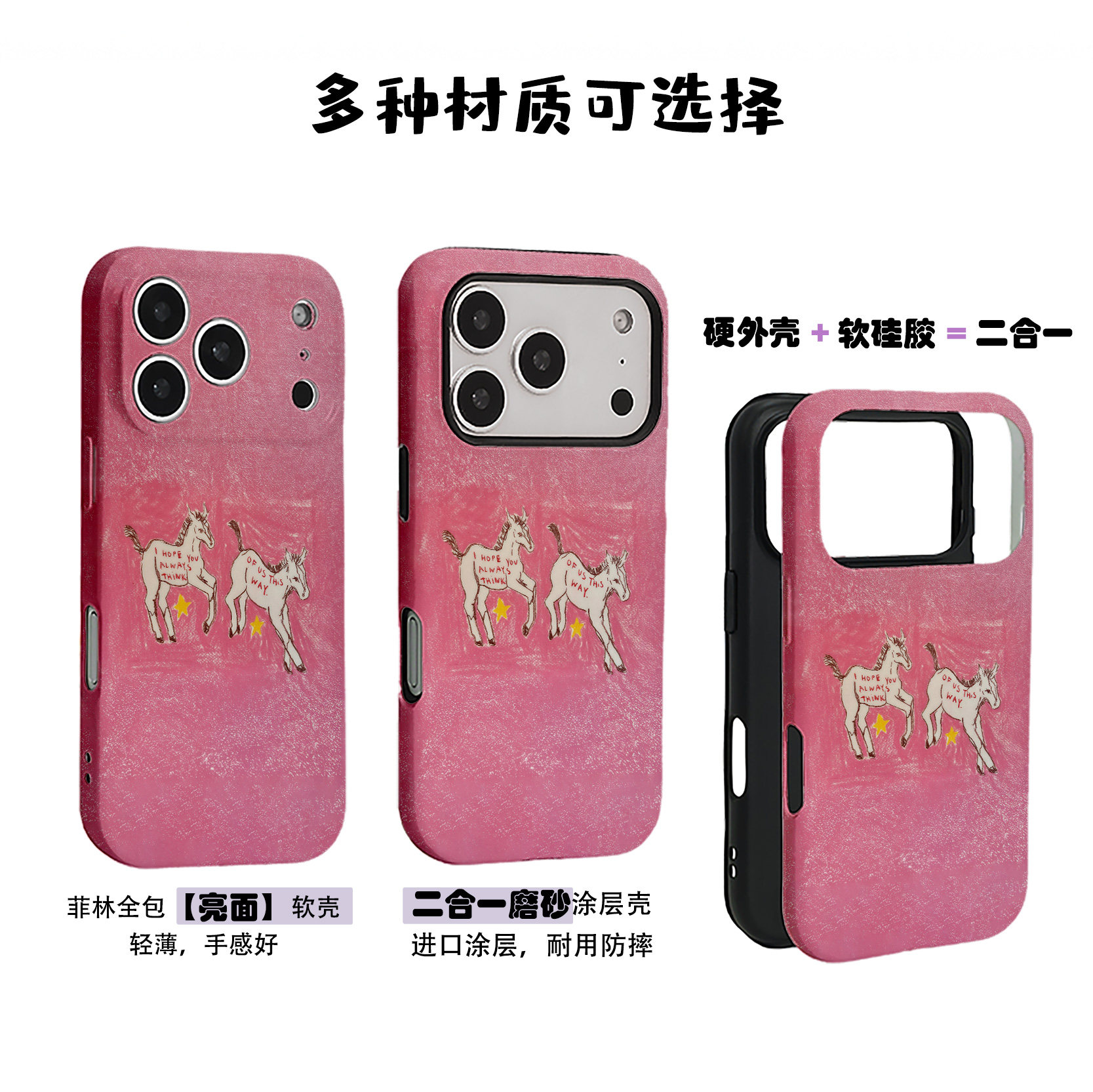 复古粉色梦幻马年白马菲林二合一手机壳适用苹果17nova14华为p70mate60小米15opporen14ovivo荣耀300iPhone16