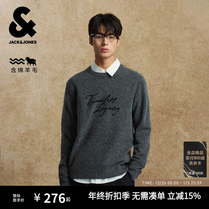 【含10%羊毛】杰克琼斯男装25年秋季新款圆领刺绣毛衣绒感针织衫