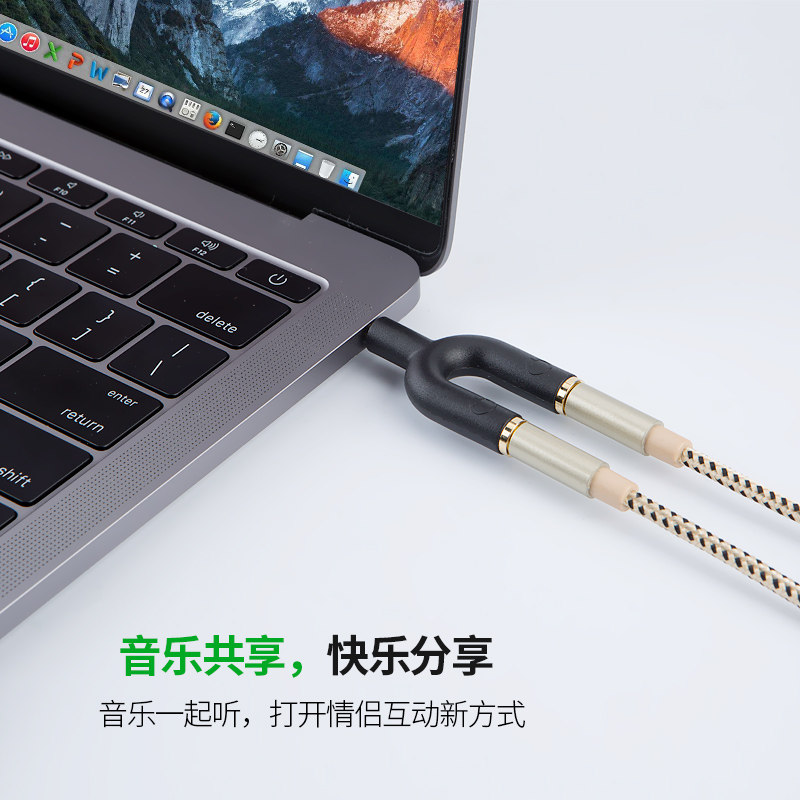 手机电脑耳机分线器一分二情侣分享3.5音频转接头适用于苹果1分2 电脑3.5mm安卓aux转换线1拖2双人公对母多孔