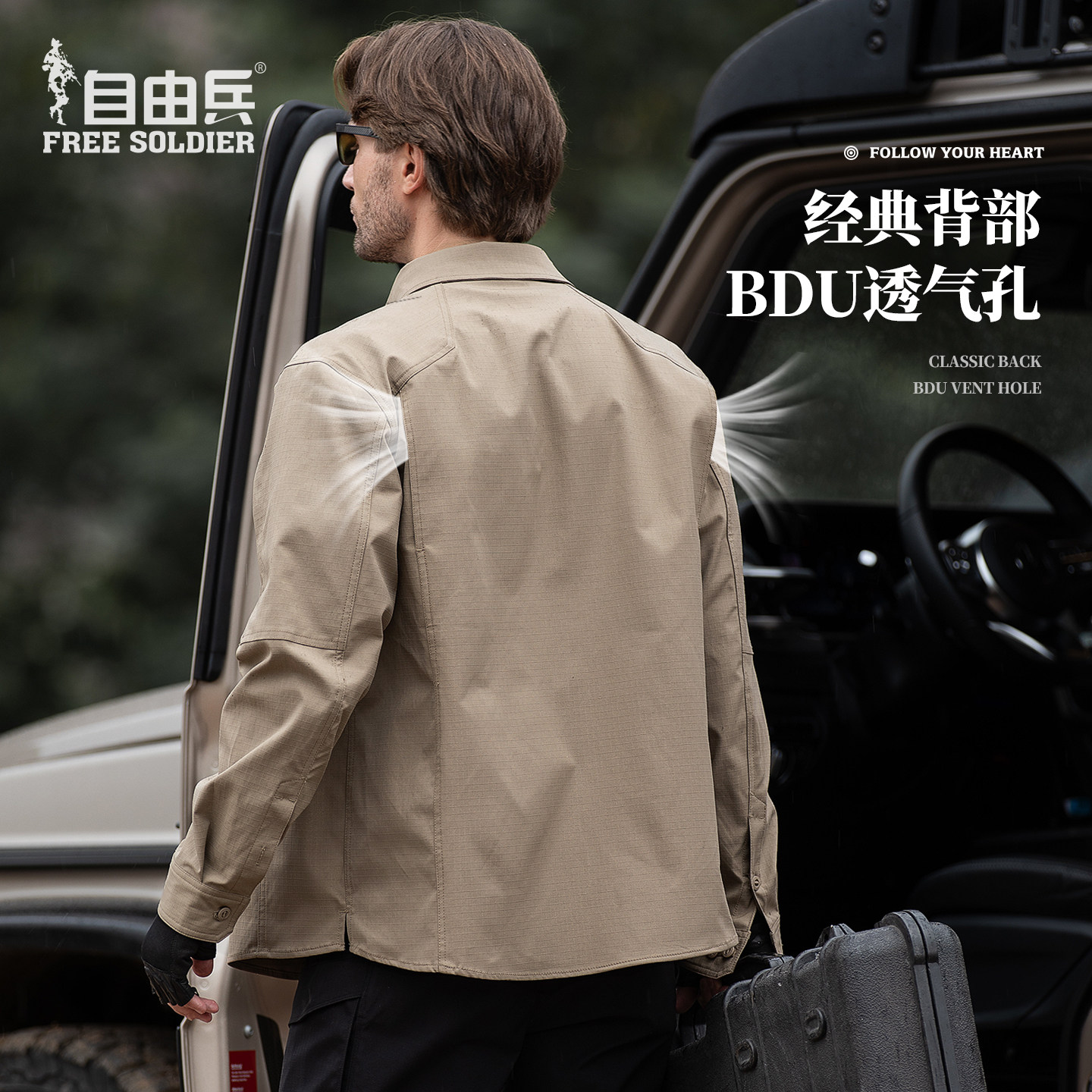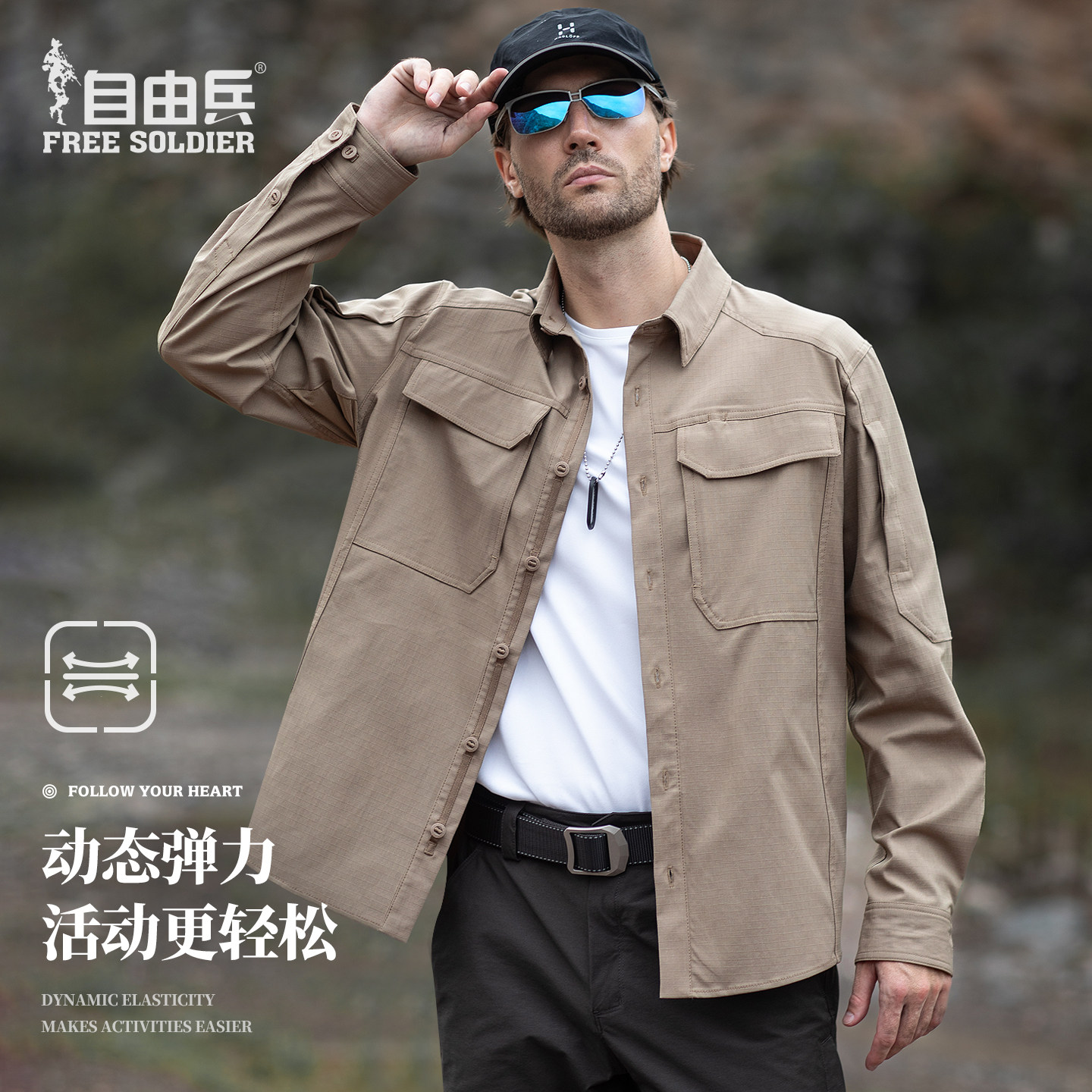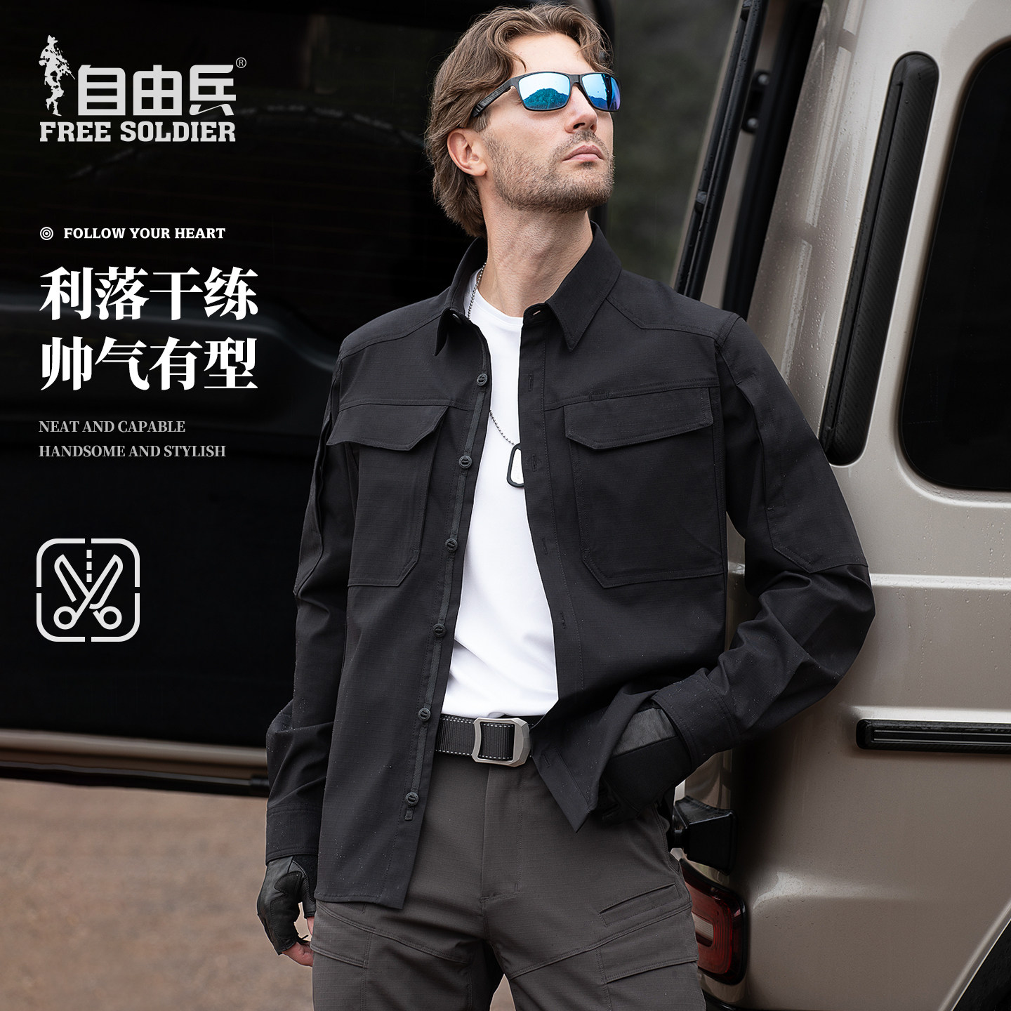 自由兵锐士多口袋战术衬衫男款防刮耐磨秋冬新款防泼水战术衬衣男