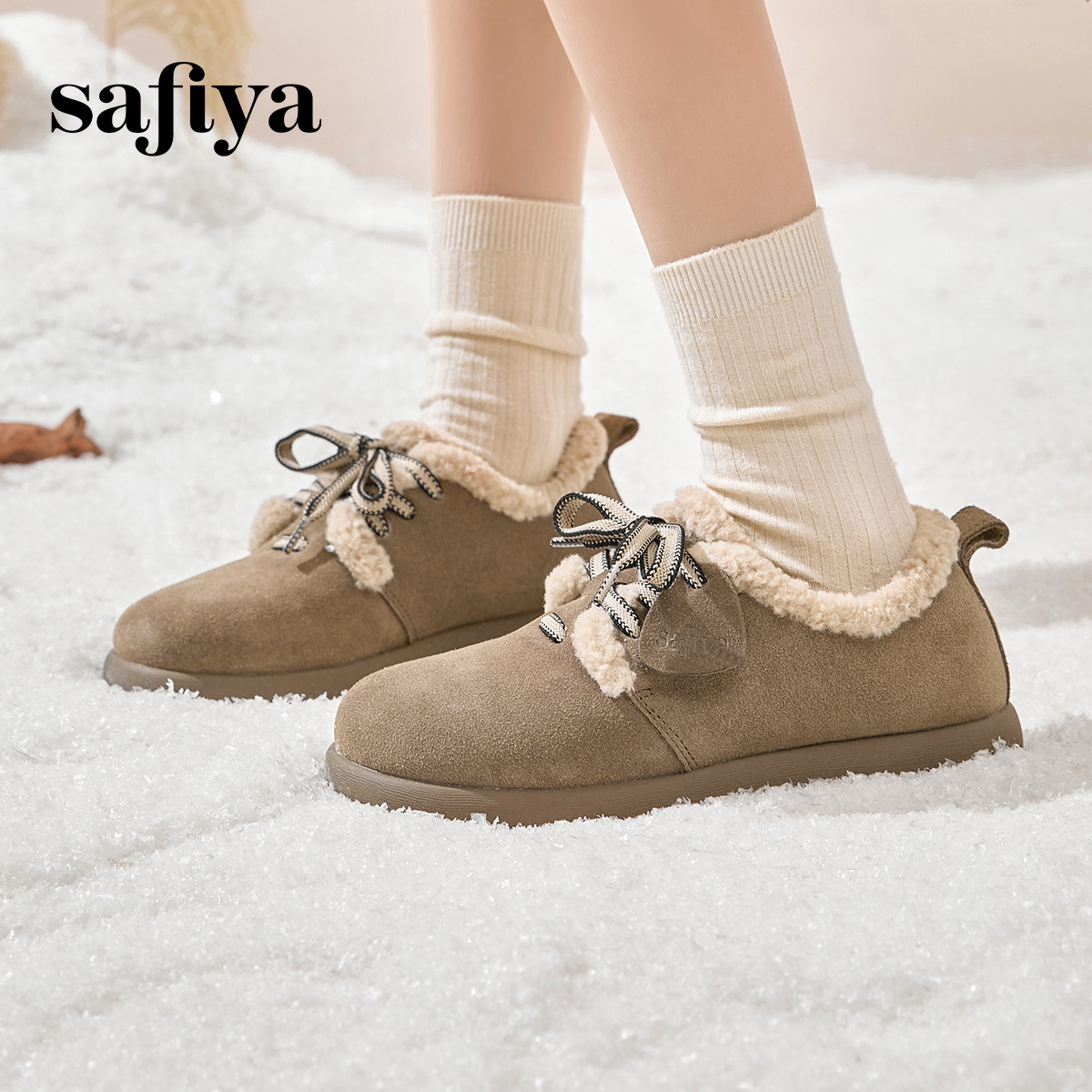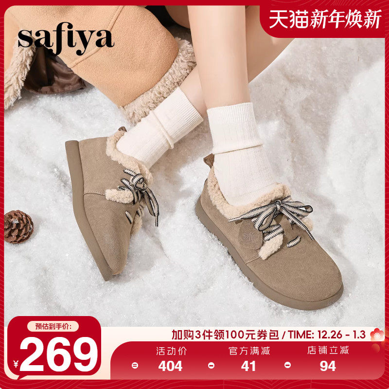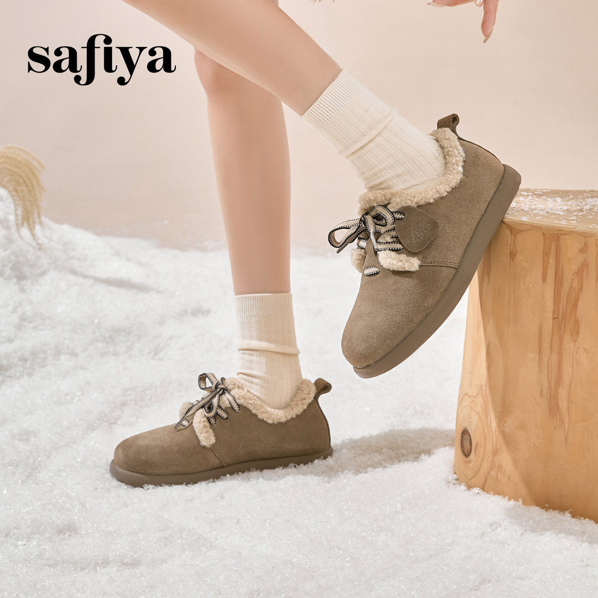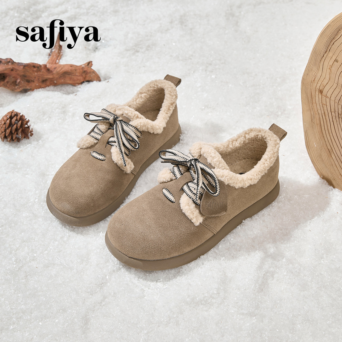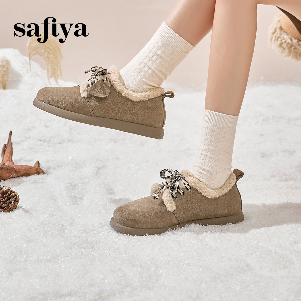 Safiya/索菲娅新款秋冬复古百搭保暖圆头系带休闲丑萌勃肯毛毛鞋