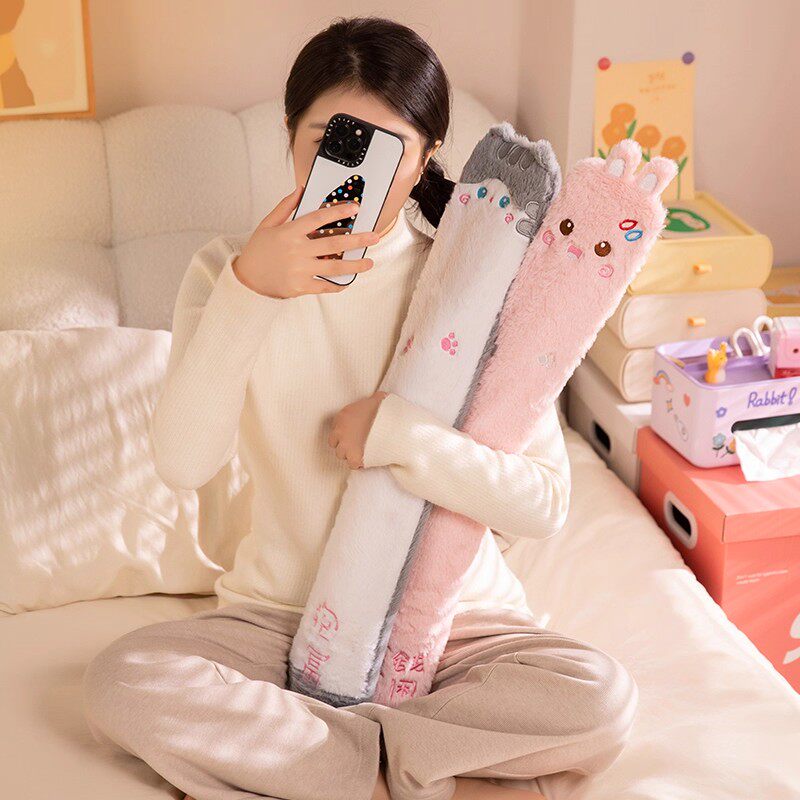 被窝专用热水袋长条款大号敷暖水袋注灌睡觉暖脚抱枕可拆洗毛绒