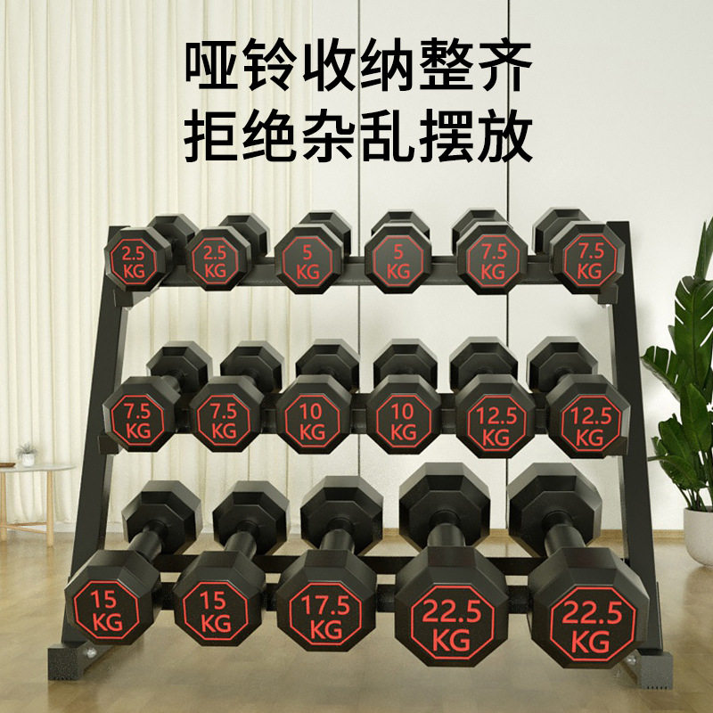 跨境焊片三层哑铃架六角可调节哑铃架家用健身器材圆头哑铃收纳架
