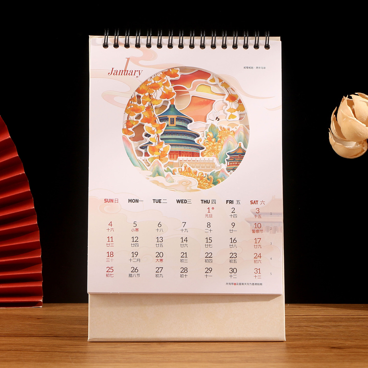 台历2026年新款立体创意古风日历桌面摆件马年卡通国风记事本备忘录倒计时计划本商务办公企业打卡月历定制做