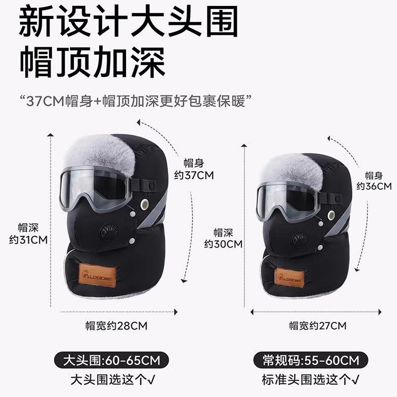 雷锋帽大头围防寒棉帽子男女冬季冬天爸爸骑车保暖防风电动车骑行