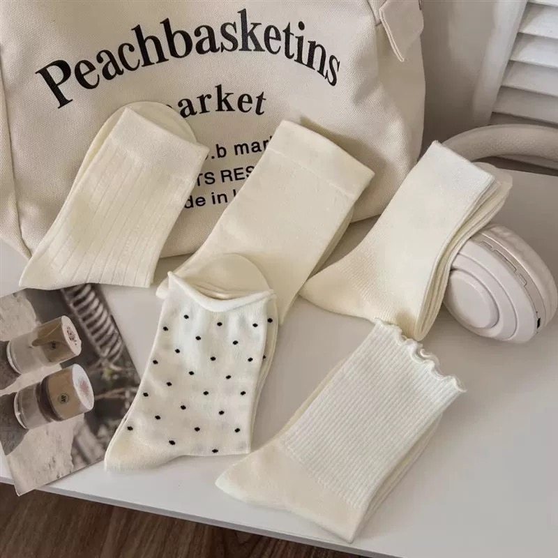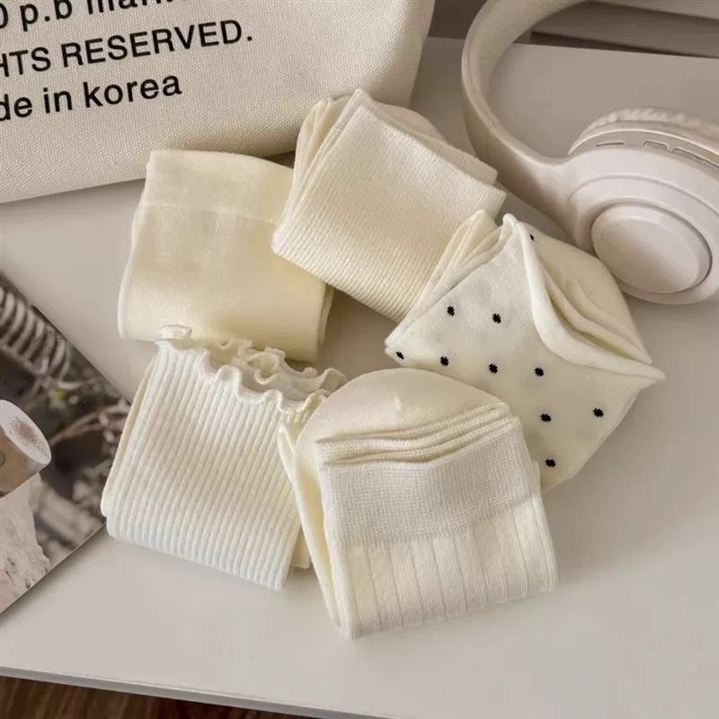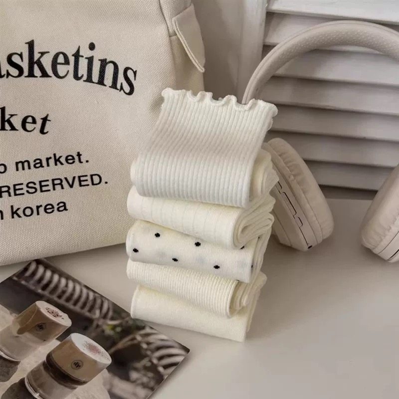 秋冬季袜子女中筒袜百搭秋季纯色堆堆袜韩版木耳边韩系长袜卷边