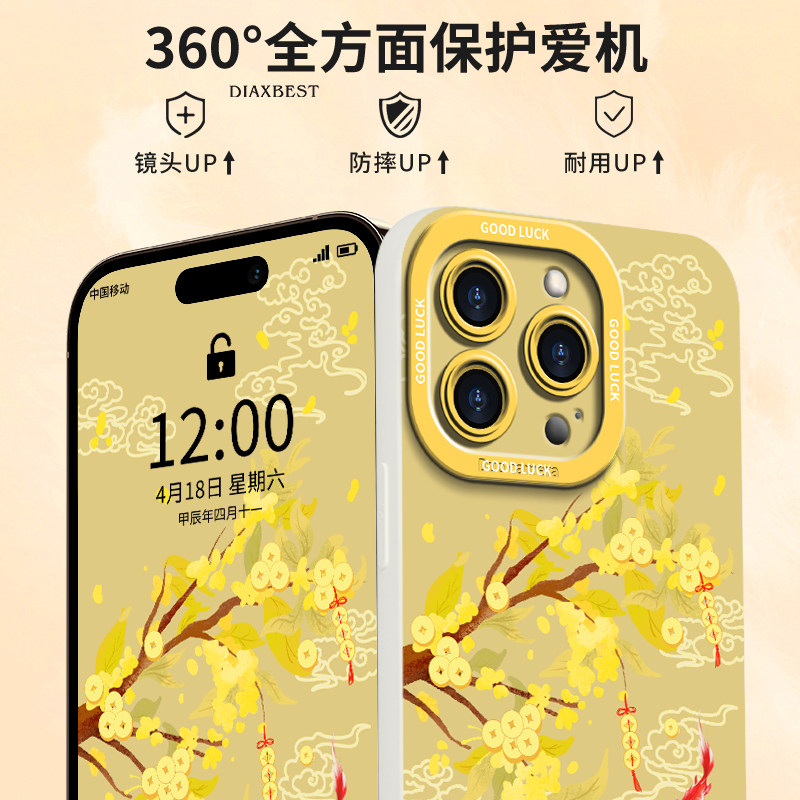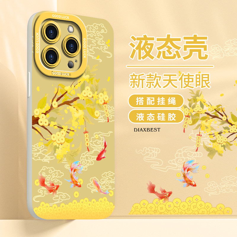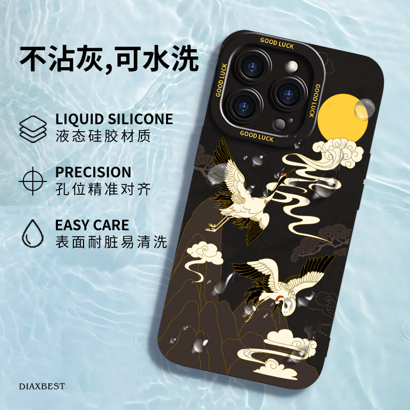 新中式飞鹤适用于苹果16pro手机壳创意国风iPhone15新款全包镜头14/13硅胶液态12天使眼防摔11/XR防摔挂绳女
