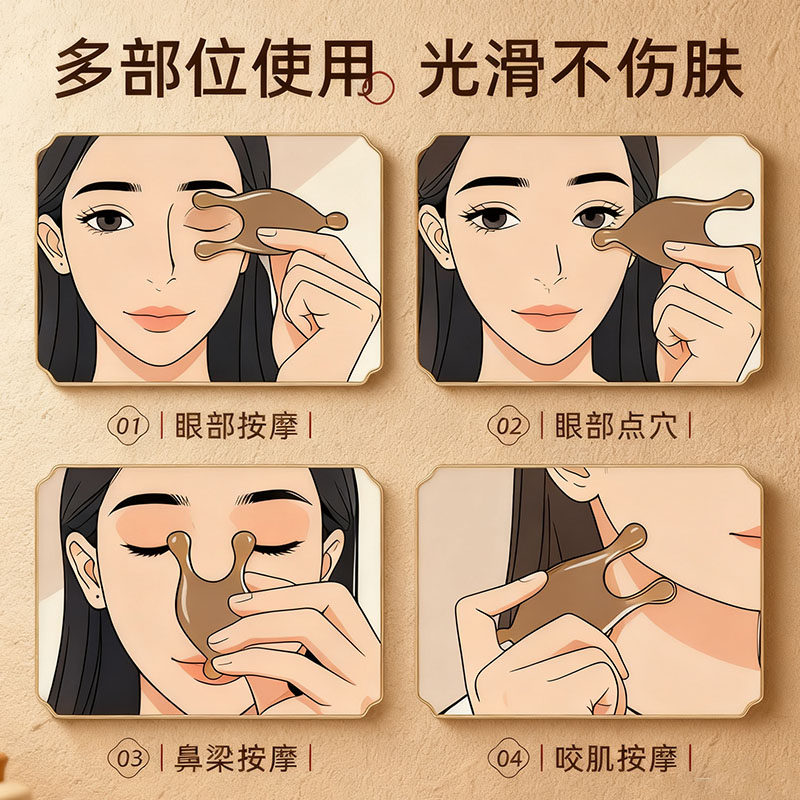 牛角眼部按摩棒鼻梁美容器眼周穴位拨筋棒小青蛙拔经面脸部板刮痧