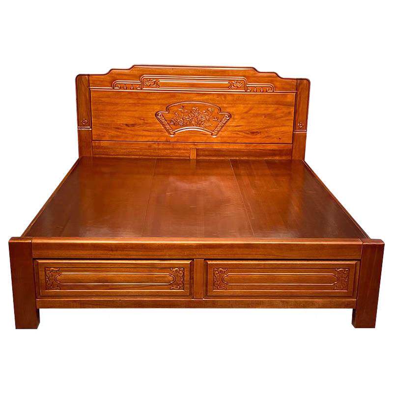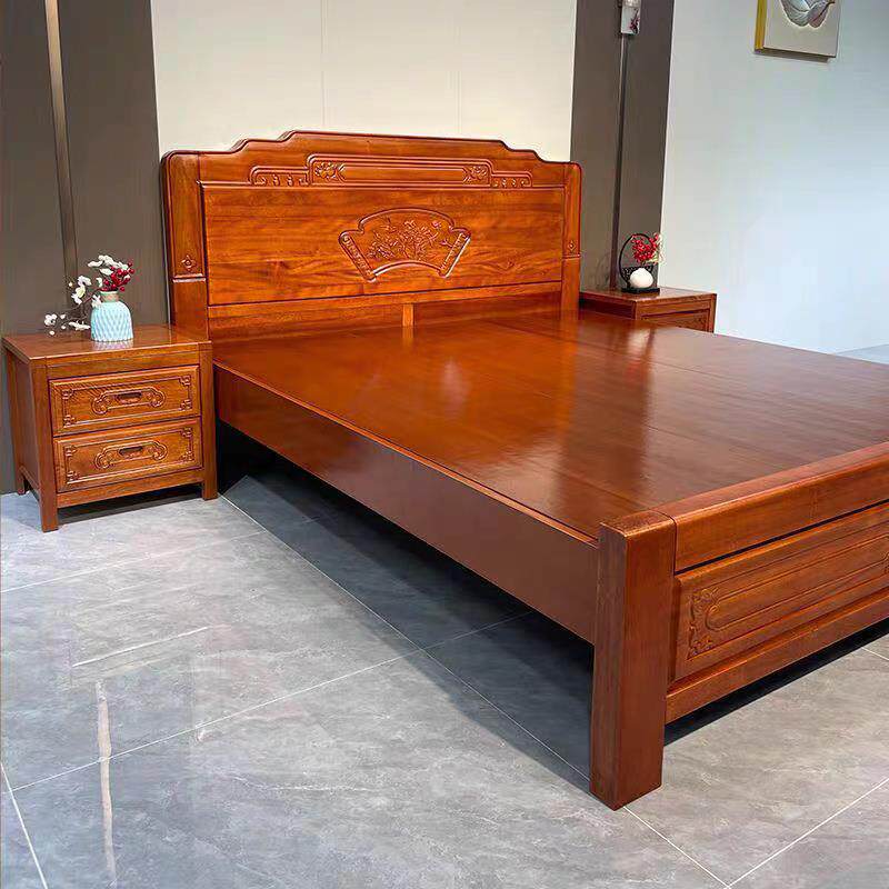 新款实木床金花梨木格木1.5m 1.8m床中式雕花全榫卯结构菠萝格