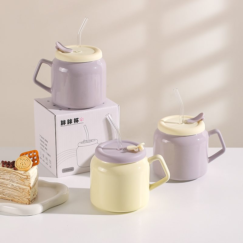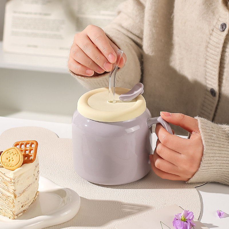 马克杯陶瓷带盖勺喝水杯子创意潮流男女情侣家用办公室早餐咖啡杯