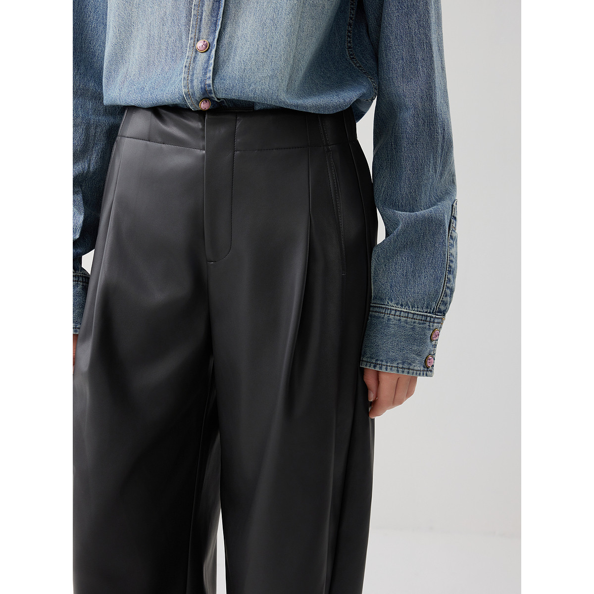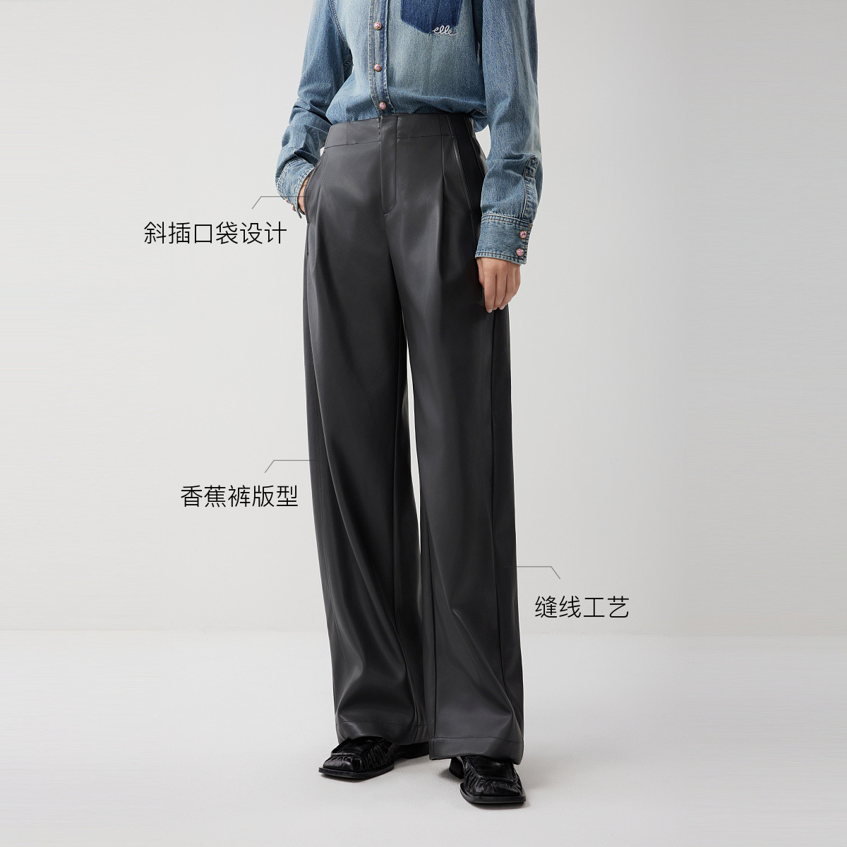 ELLE摩登高级感休闲pu皮裤女2025冬季新款宽松通勤时髦香蕉裤子