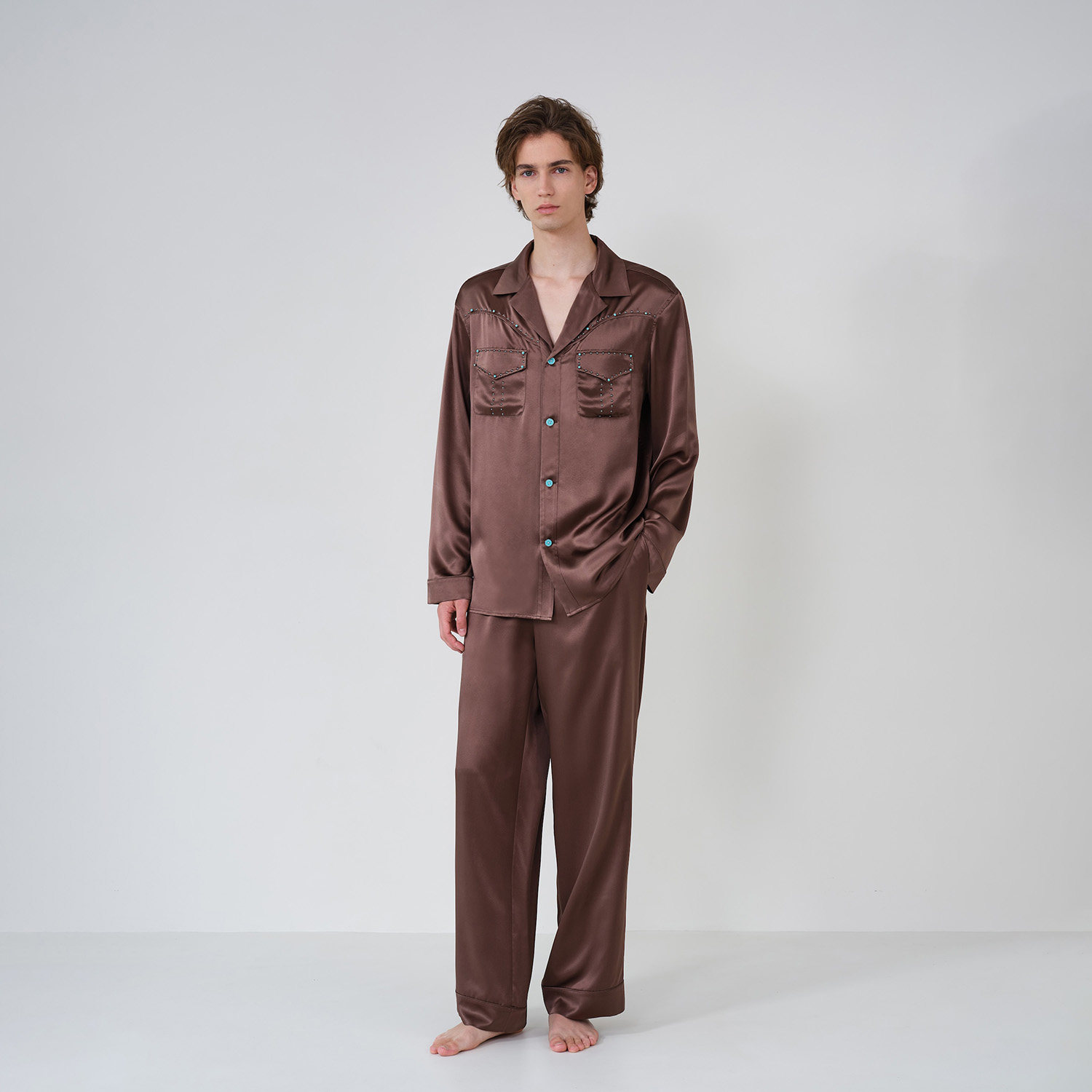 SILKY MIRACLE牛仔真丝睡衣男士Cowboy新款可外穿复古家居服套装