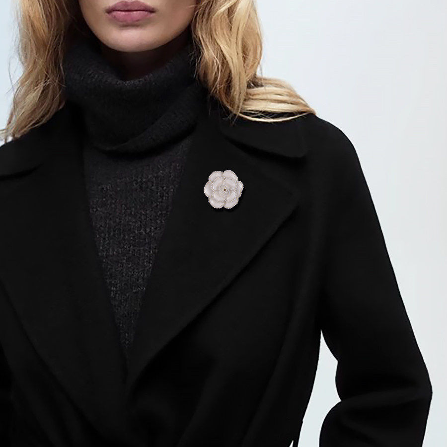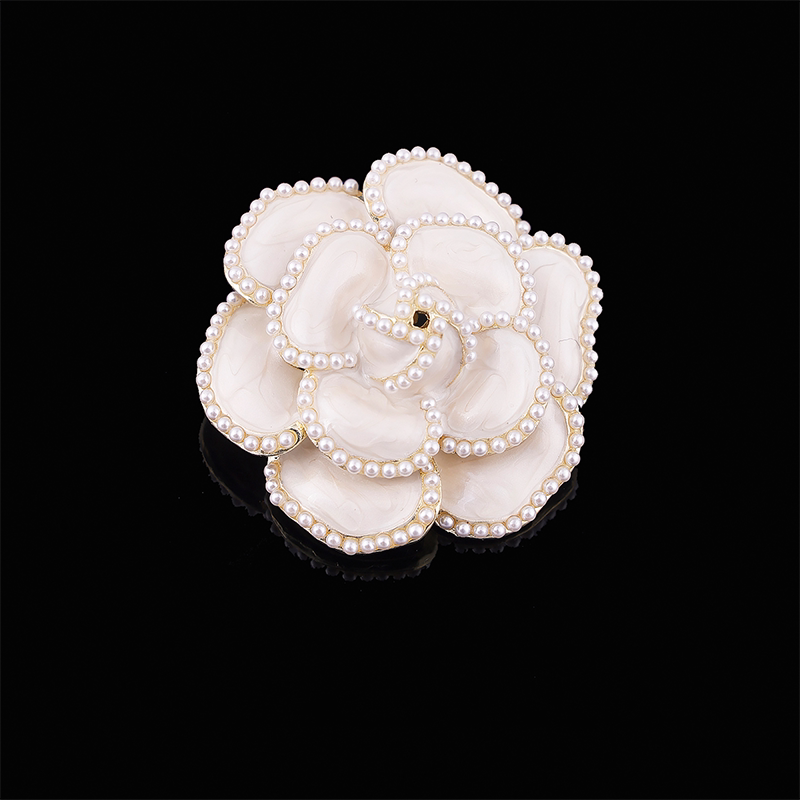法式珍珠山茶花胸针女款气质小香风胸花高档西装别针配饰经典百搭