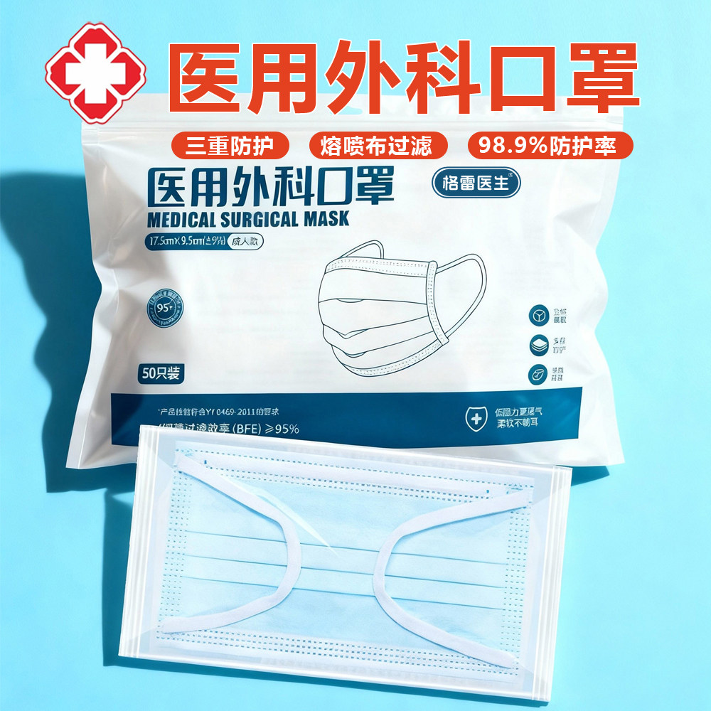 德医生医用外科口罩独立包装灭菌医用透气口罩一次性口罩防护口罩