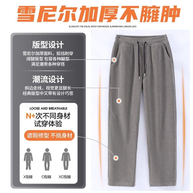 JRP真维斯裤子男运动长裤冬季休闲卫裤雪尼尔加绒直筒裤束脚裤