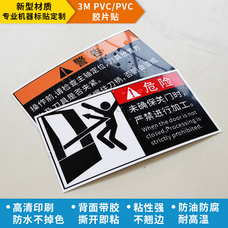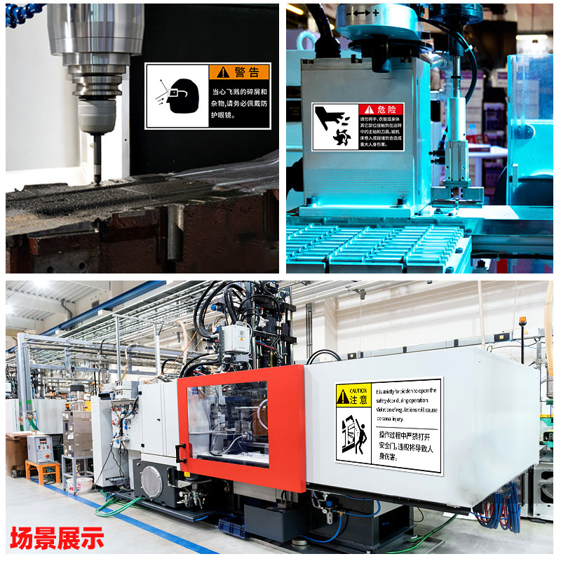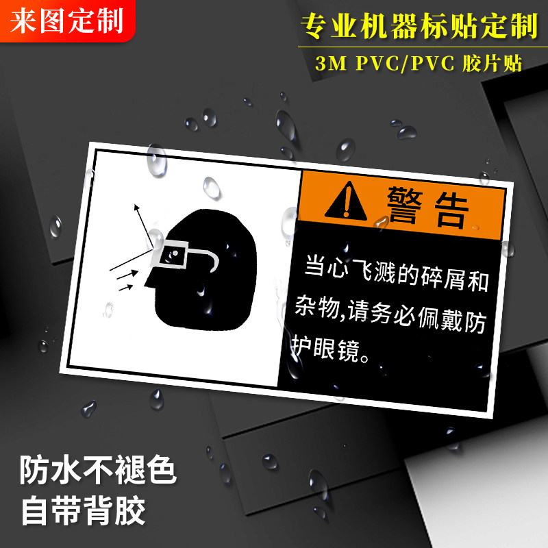 必须戴护目镜CNC设备安全警示标识牌车床加工中心警告牌标签贴纸