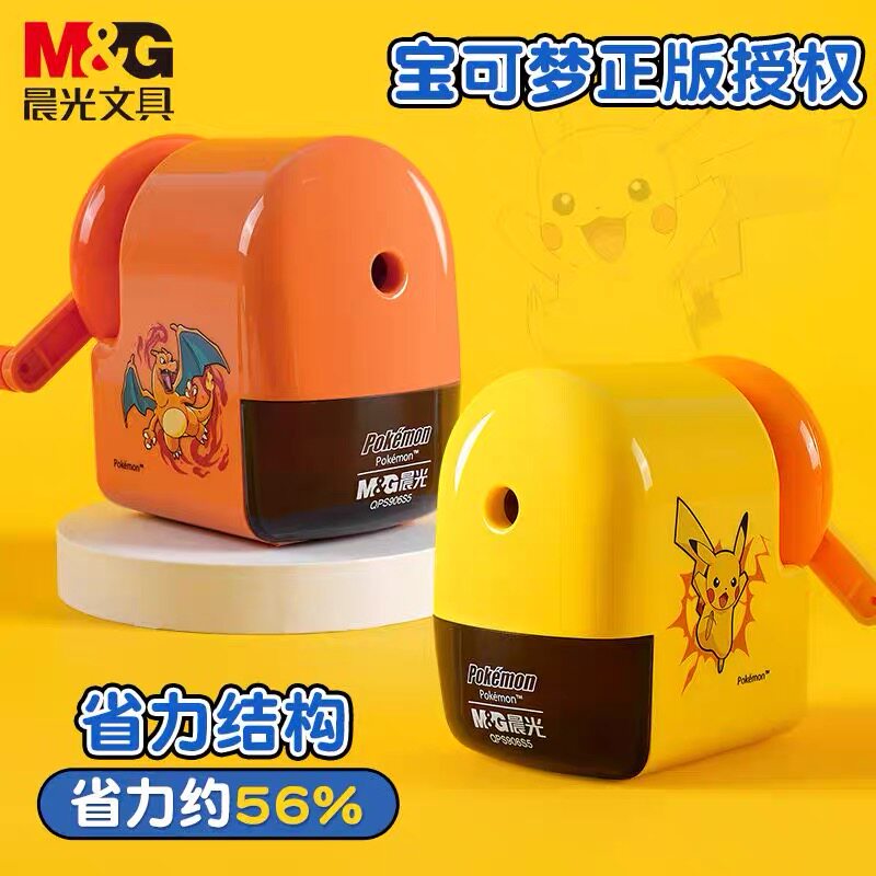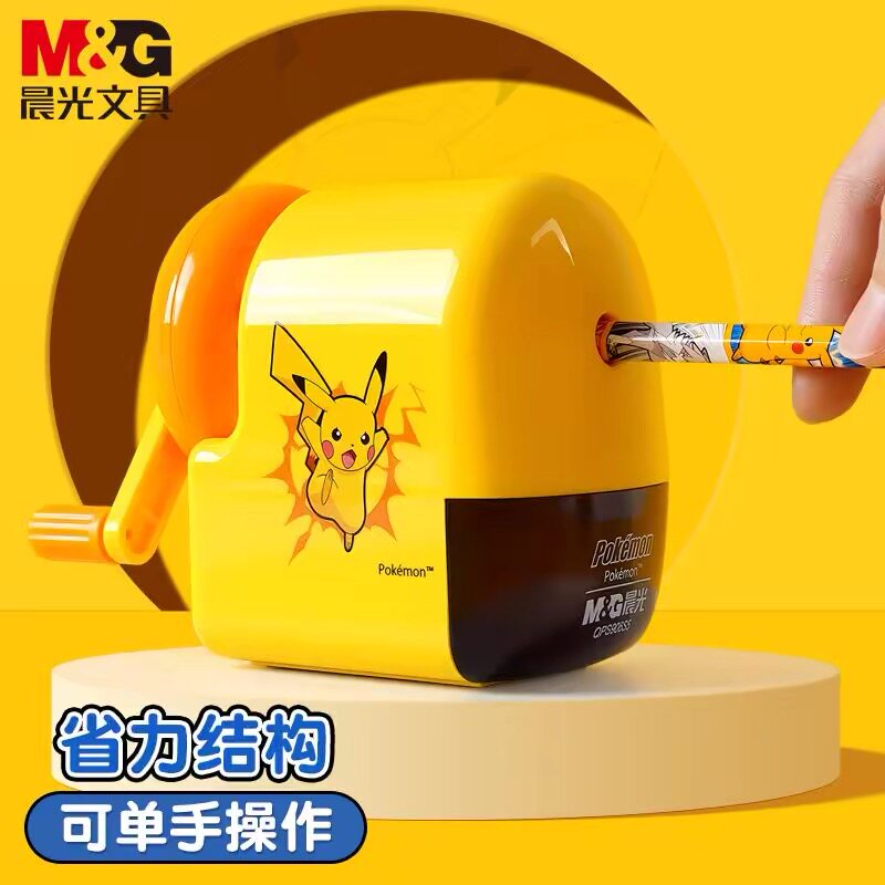 晨光新款宝可梦联名手摇卷笔刀省力削笔机小学生专用铅笔刀笔刨自动进铅儿童幼儿园女孩卡通手动皮卡丘旋笔机