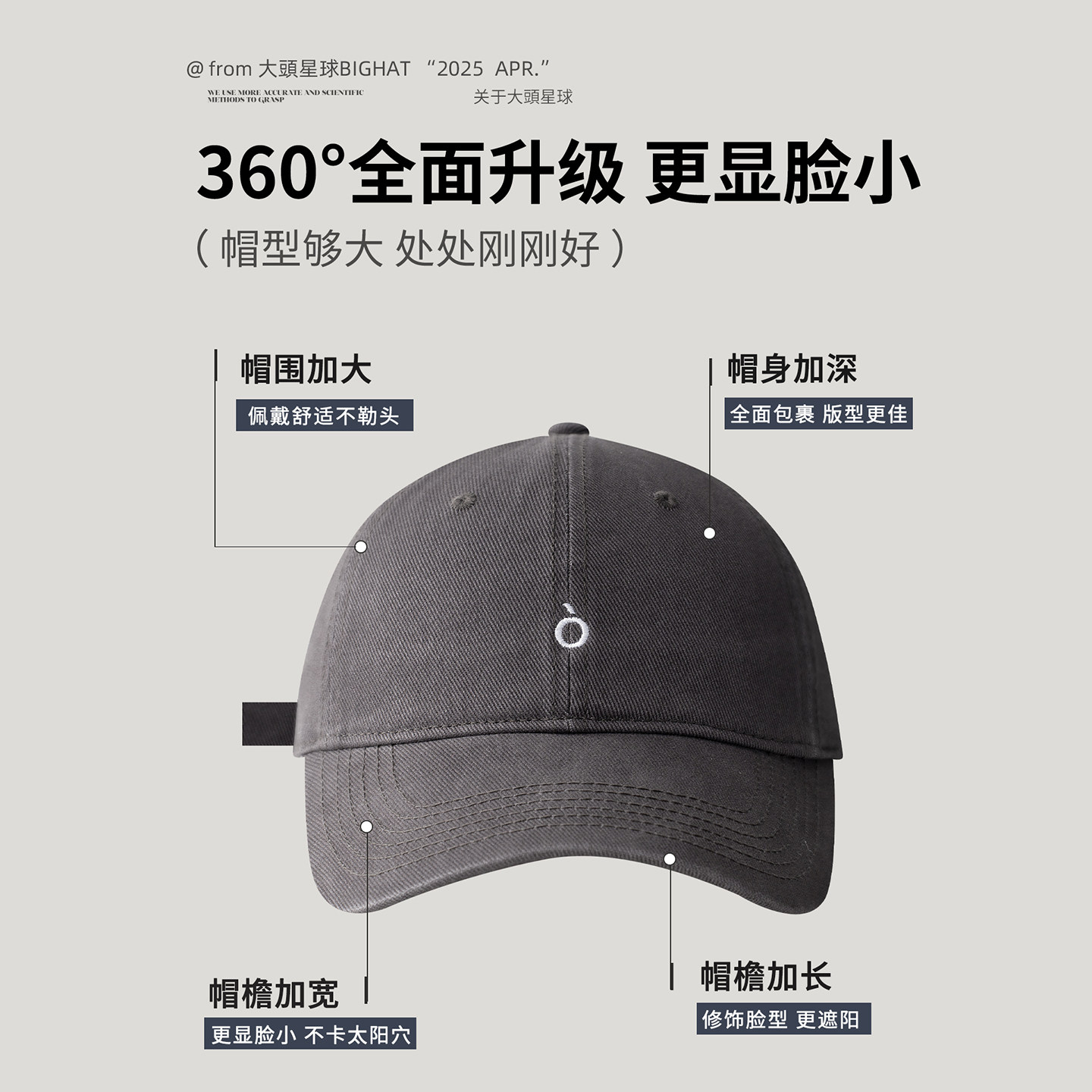 美式复古字母灰色棒球帽女高级感宽檐大头围显脸小百搭鸭舌帽子男