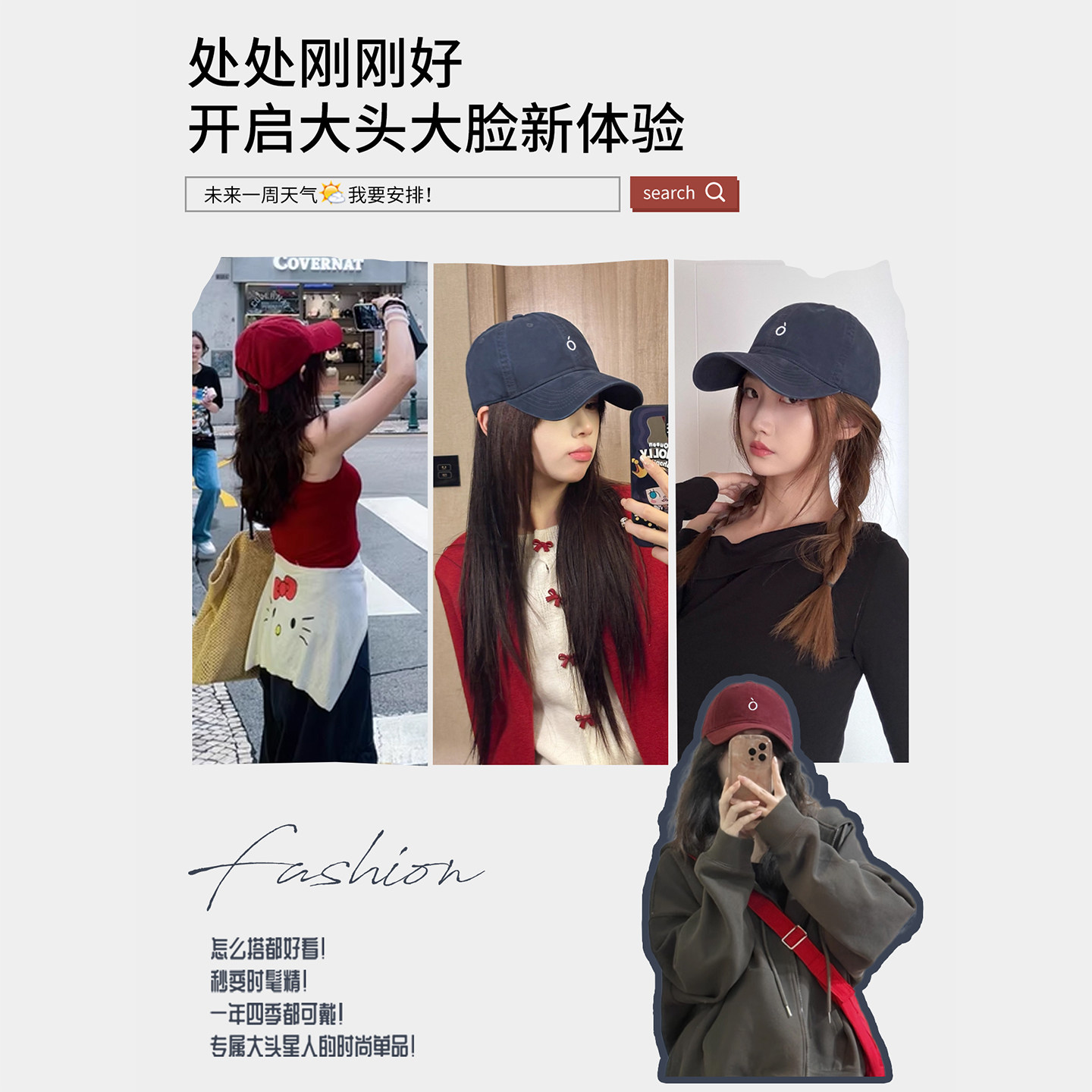 酒红色大头围帽子棒球帽大脸显脸小宽帽檐女加大加深顶红色鸭舌帽