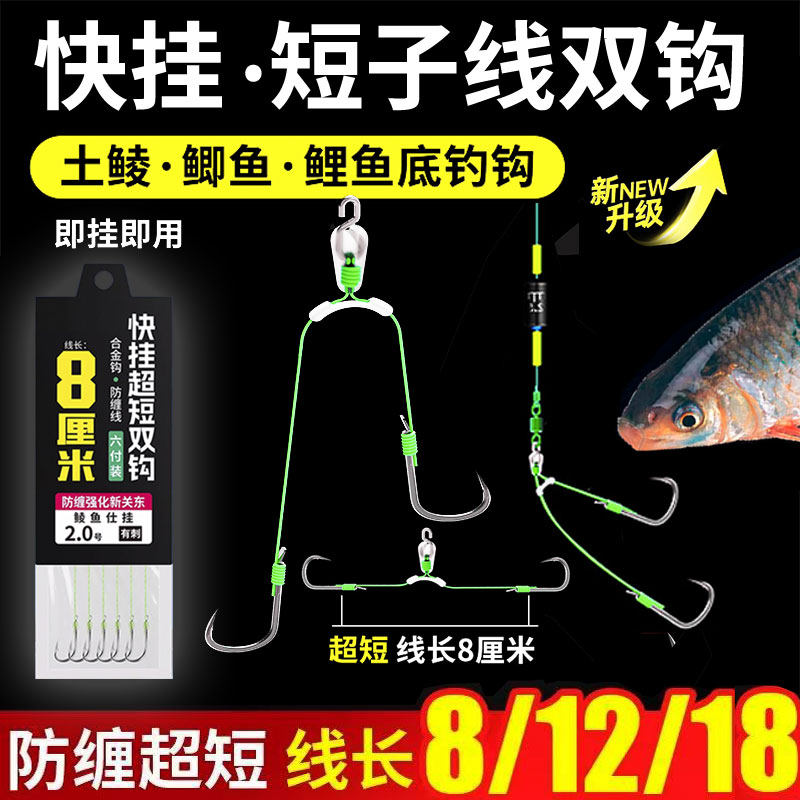 8厘米快挂土鲮短子线双钩梅州钓法鲮鱼新关东嗦口跑铅鱼钩大力马