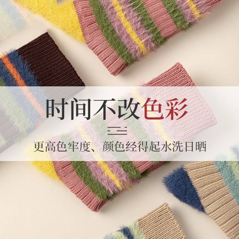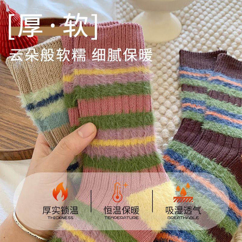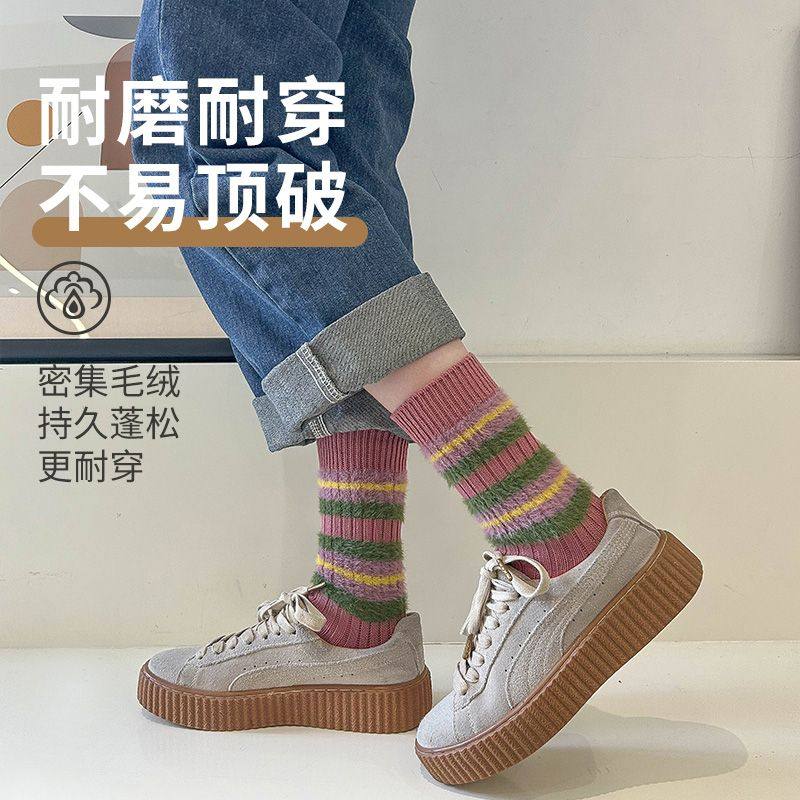 女生袜子水貂绒保暖地板袜秋冬季加厚加绒中高筒学生袜拼色韩系