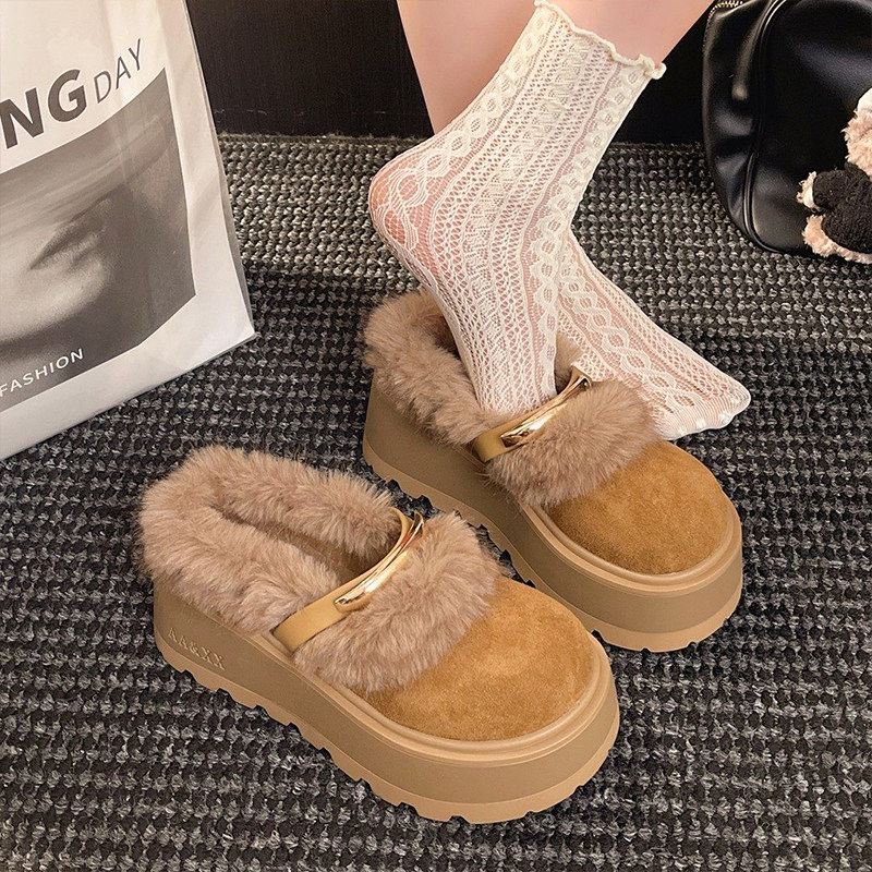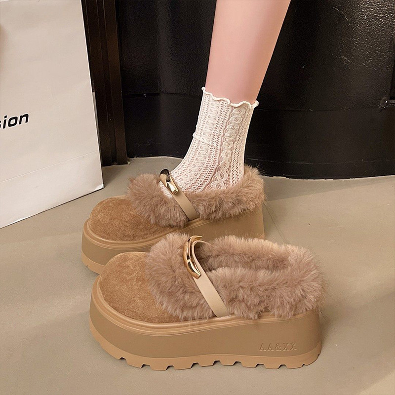叁叔家~内增高勃肯鞋女加绒秋冬保暖毛毛半拖外穿厚底博肯鞋