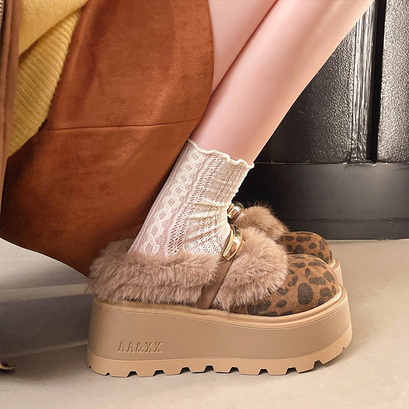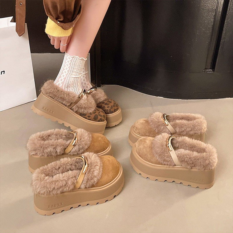 【水貂绒】豹纹毛毛鞋女新款冬季厚底增高小个子加绒保暖勃肯棉鞋