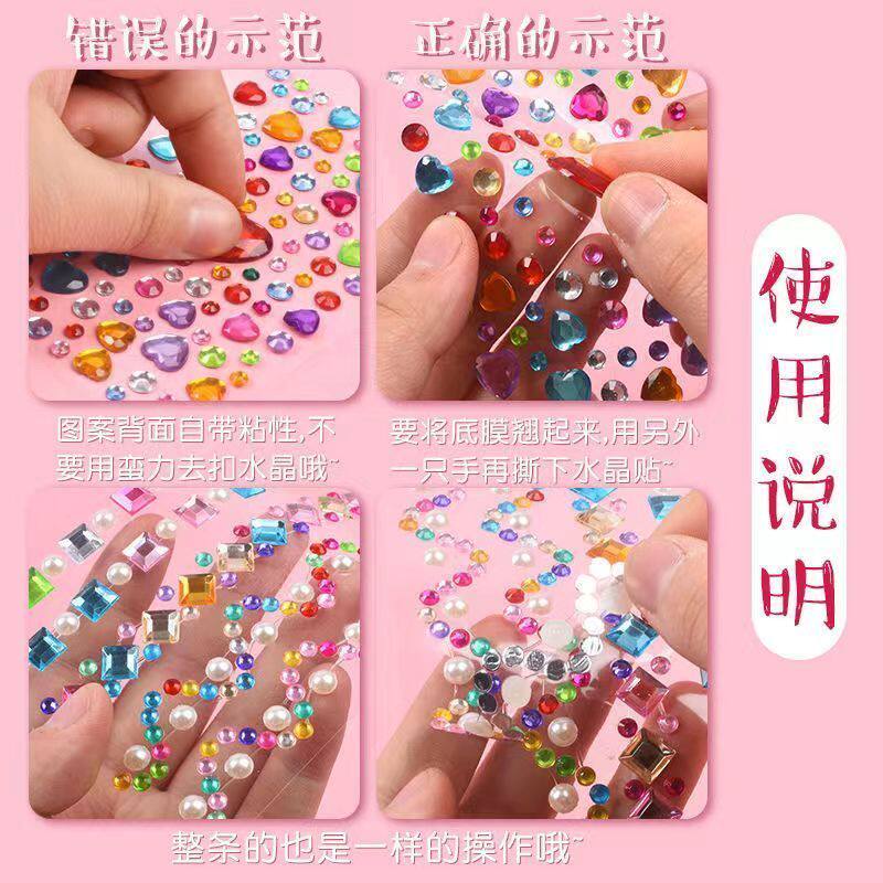 儿童彩色贴纸宝石贴画diy闪亮钻石粘贴纸卡通公主水晶爱心