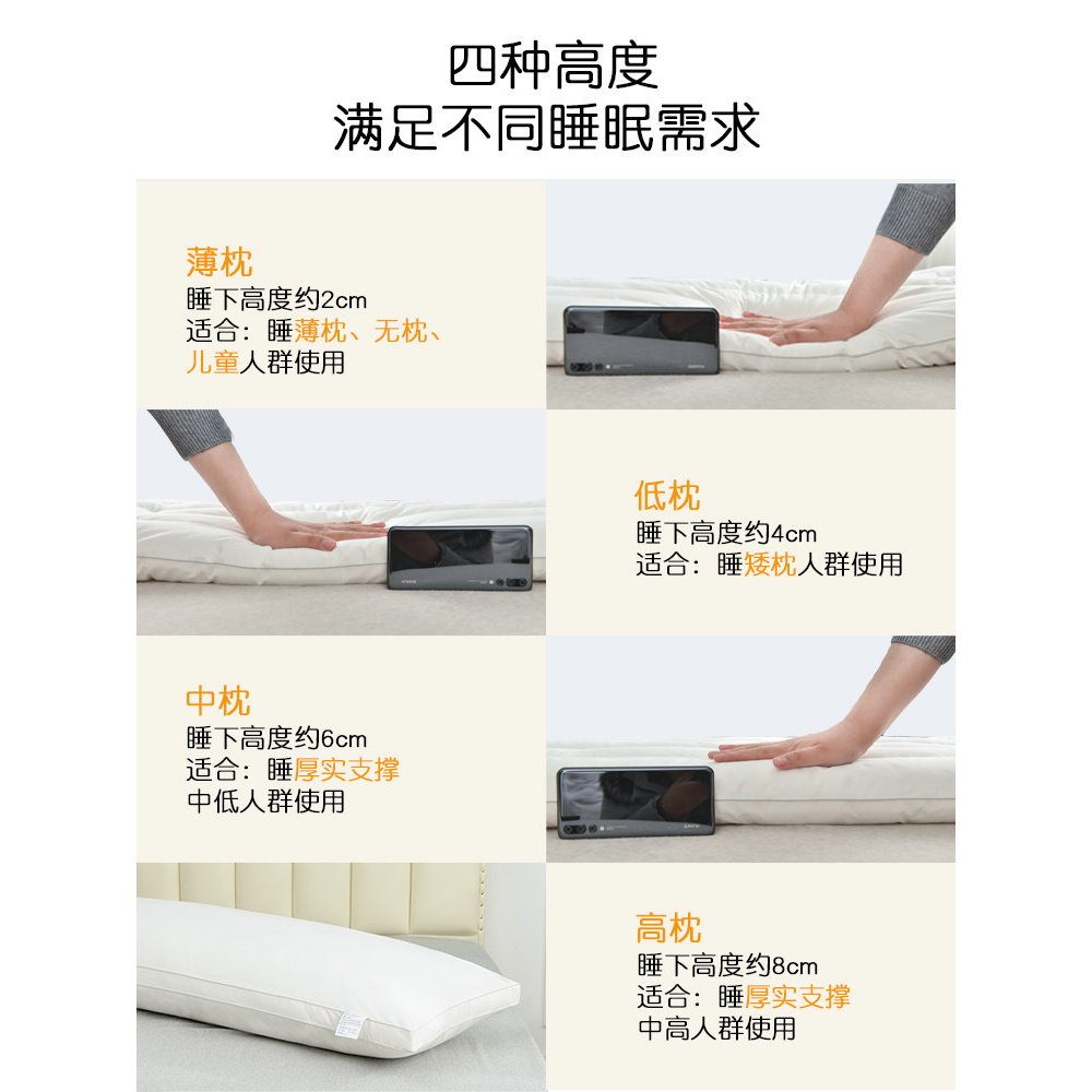 A类母婴枕头护颈椎枕芯助睡眠学生宿舍男酒店专用单人低家用一对