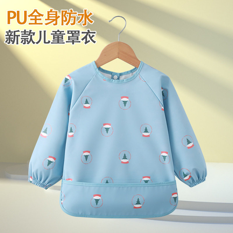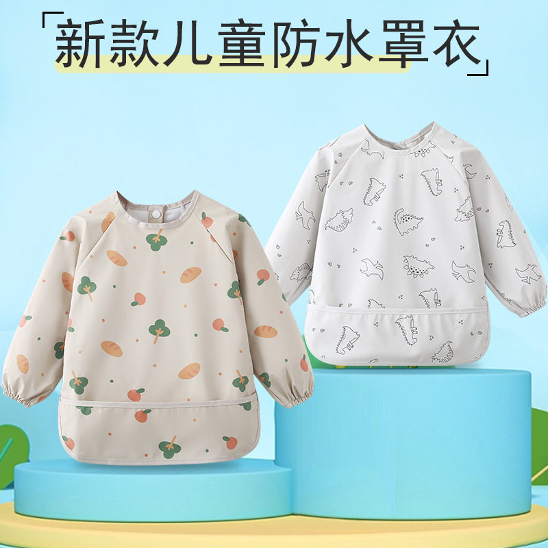 儿童罩衣PU防水防脏婴幼儿吃饭围兜饭兜男女童免洗护衣新款画画