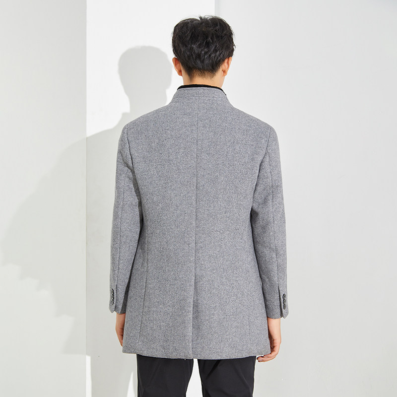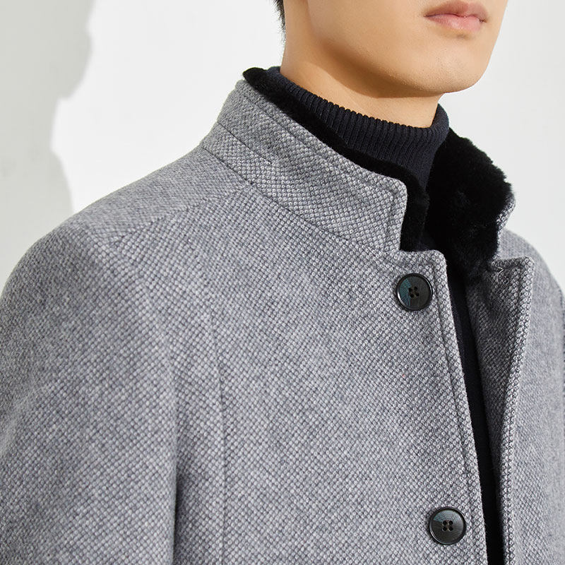 捡漏!大牌撤标冬季加棉可脱卸獭兔毛领羊毛大衣商务毛呢外套上衣