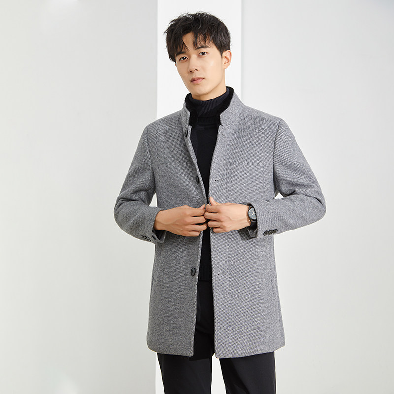 秋冬季新款毛呢大衣男中长款过膝无羊绒呢子风衣外套韩版宽松落肩