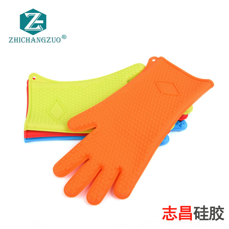 280g加长款钻石硅胶五指手套耐磨耐高温烘焙微波炉烤箱隔热手套