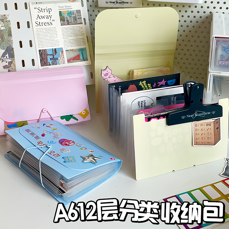 ins风A6贴纸风琴收纳包可站立伸缩多层透明插页小卡便签夹票据夹