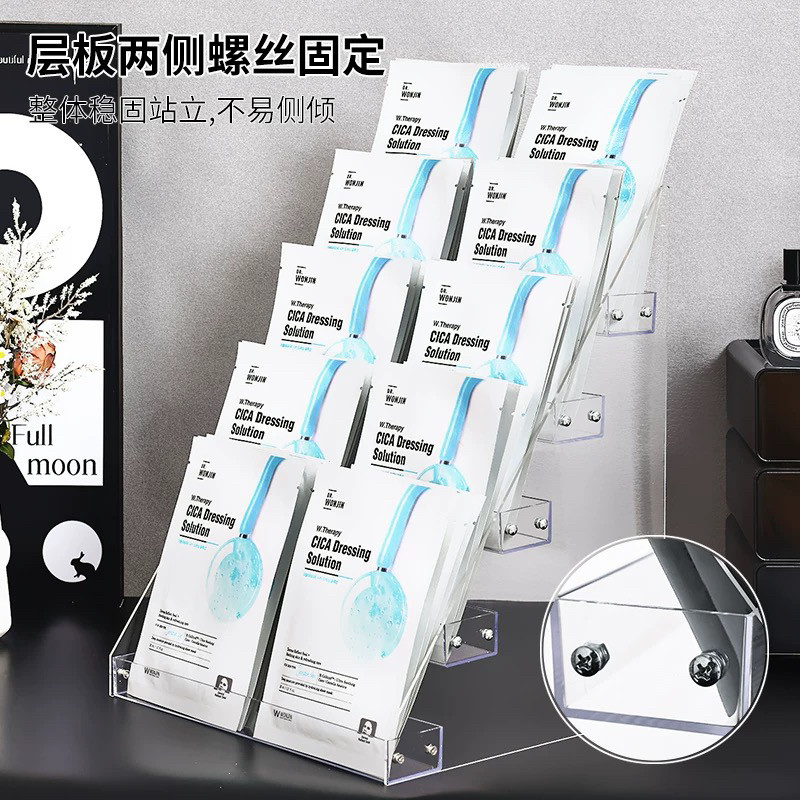 面膜阶梯展示架化妆品店摆放护肤品透明货架亚克力桌面香水收纳架