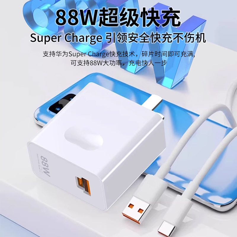 3C认证AC18兼容120W快充QC4.0闪充88W快充充电器手机适用华为 vivo iqoo 小米oppo充电头数据线套装盒装批发