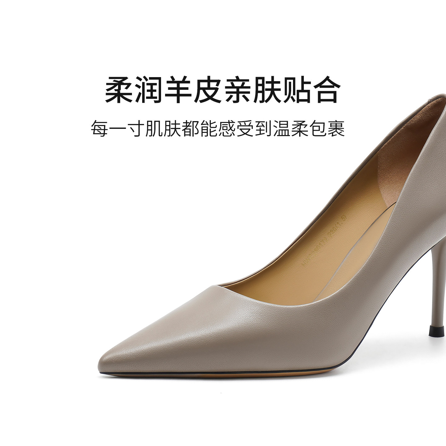 哈森法式简约尖头高跟鞋细跟气质通勤浅口单鞋2026新款HWS260172